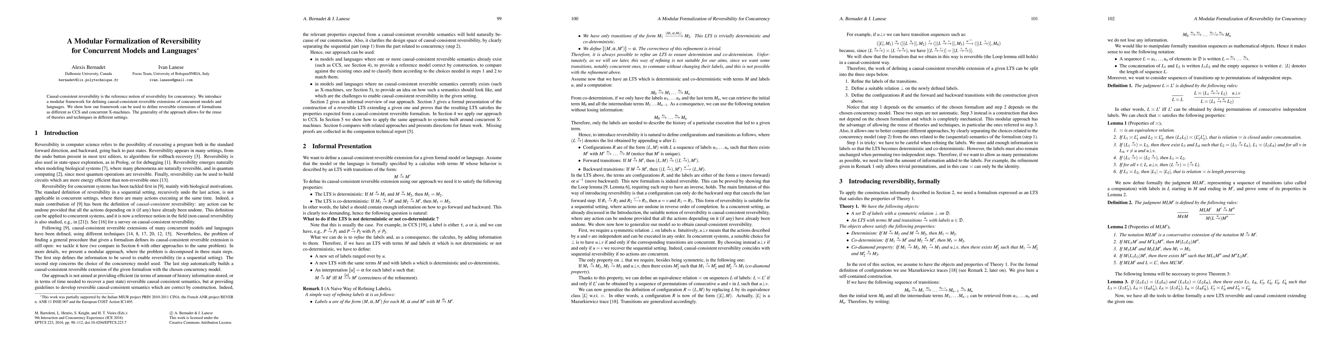 This paper presents a modular framework for defining causal-consistent reversible extensions of concurrent models and languages, demonstrating its application to formalisms like CCS and concurrent X-machines. The approach promotes the reuse of theories and techniques across different settings.