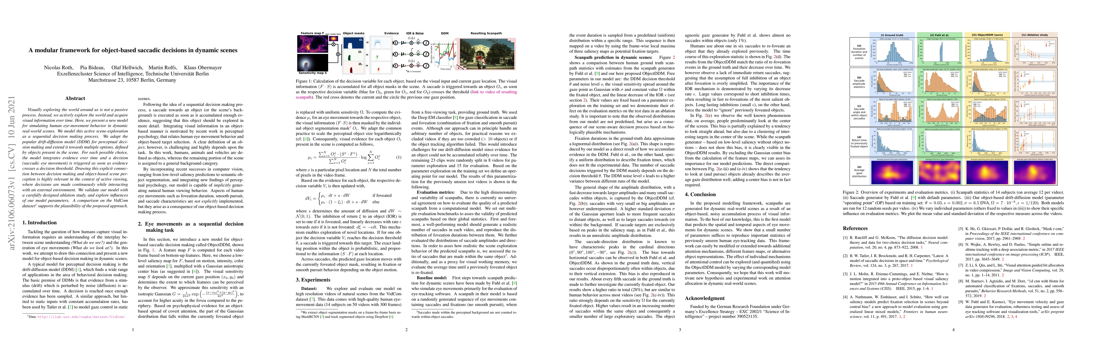 This paper introduces a modular framework that simulates human eye-movement behavior in dynamic scenes through a sequential decision-making process, adapting the drift-diffusion model to multiple object choices. The model's validity is supported by an ablation study and comparison on the VidCom dataset.