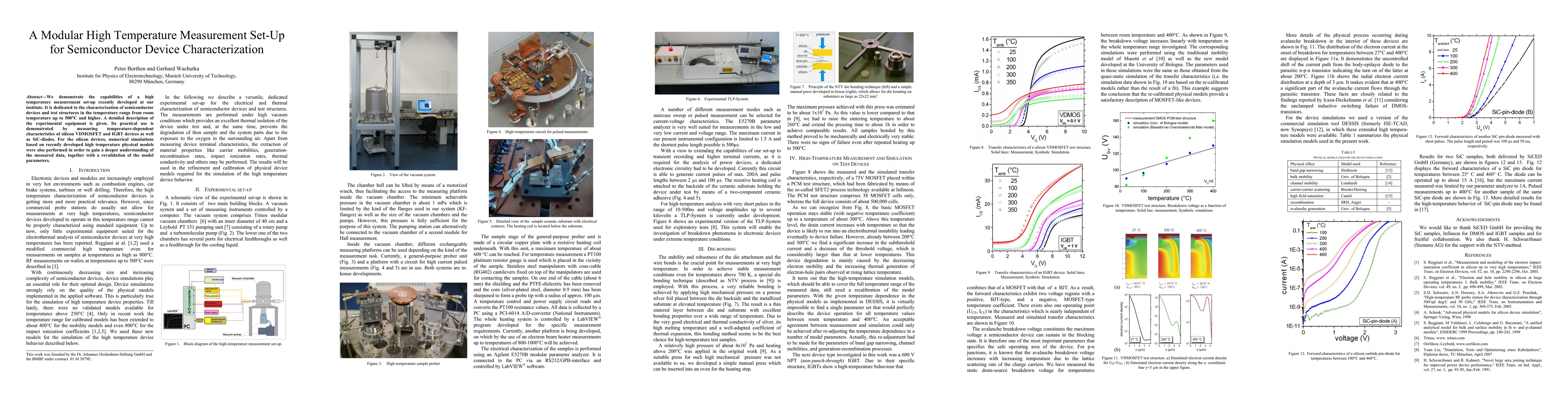 We demonstrate the capabilities of a high temperature measurement set-up recently developed at our institute. It is dedicated to the characterization of semiconductor devices and test structures in the temperature range from room temperature up to 500 degrees C and higher. A detailed description of the experimental aquipment is given. Its practical use is demonstrated by measuring temperature-dependent charcteristics of silicon VDMOSFET and IGBT devices as well as SiC-diodes. For the silicon devices, numerical simulations based on recently developed high temperature physical models were also performed in order to gain a deeper understanding of the measured data, together with a revalidation of the model parameters.
