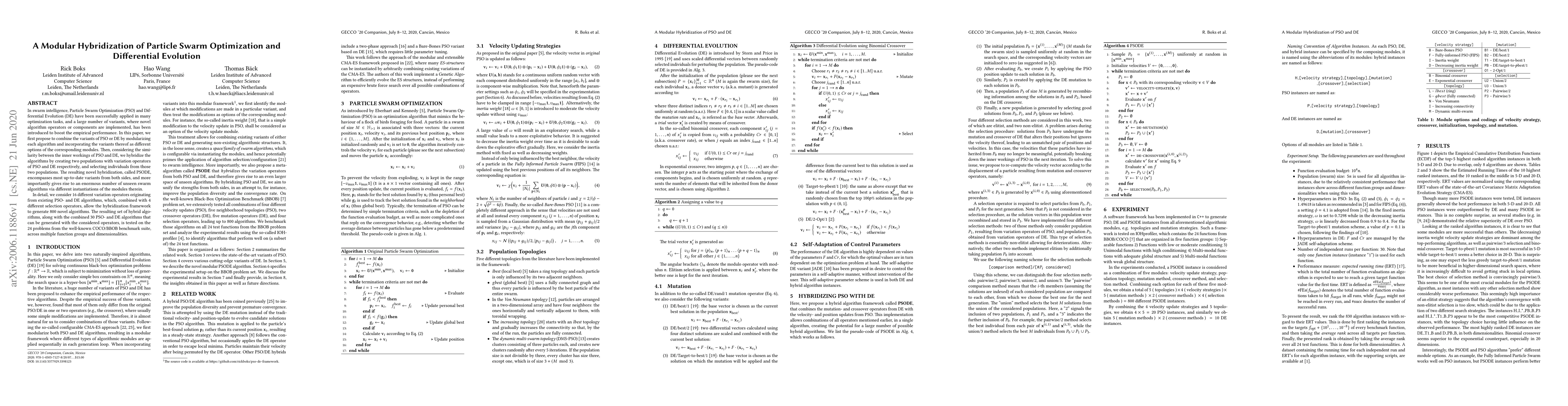 In swarm intelligence, Particle Swarm Optimization (PSO) and Differential Evolution (DE) have been successfully applied in many optimization tasks, and a large number of variants, where novel algorithm operators or components are implemented, has been introduced to boost the empirical performance. In this paper, we first propose to combine the variants of PSO or DE by modularizing each algorithm and incorporating the variants thereof as different options of the corresponding modules. Then, considering the similarity between the inner workings of PSO and DE, we hybridize the algorithms by creating two populations with variation operators of PSO and DE respectively, and selecting individuals from those two populations. The resulting novel hybridization, called PSODE, encompasses most up-to-date variants from both sides, and more importantly gives rise to an enormous number of unseen swarm algorithms via different instantiations of the modules therein. In detail, we consider 16 different variation operators originating from existing PSO- and DE algorithms, which, combined with 4 different selection operators, allow the hybridization framework to generate 800 novel algorithms. The resulting set of hybrid algorithms, along with the combined 30 PSO- and DE algorithms that can be generated with the considered operators, is tested on the 24 problems from the well-known COCO/BBOB benchmark suite, across multiple function groups and dimensionalities.