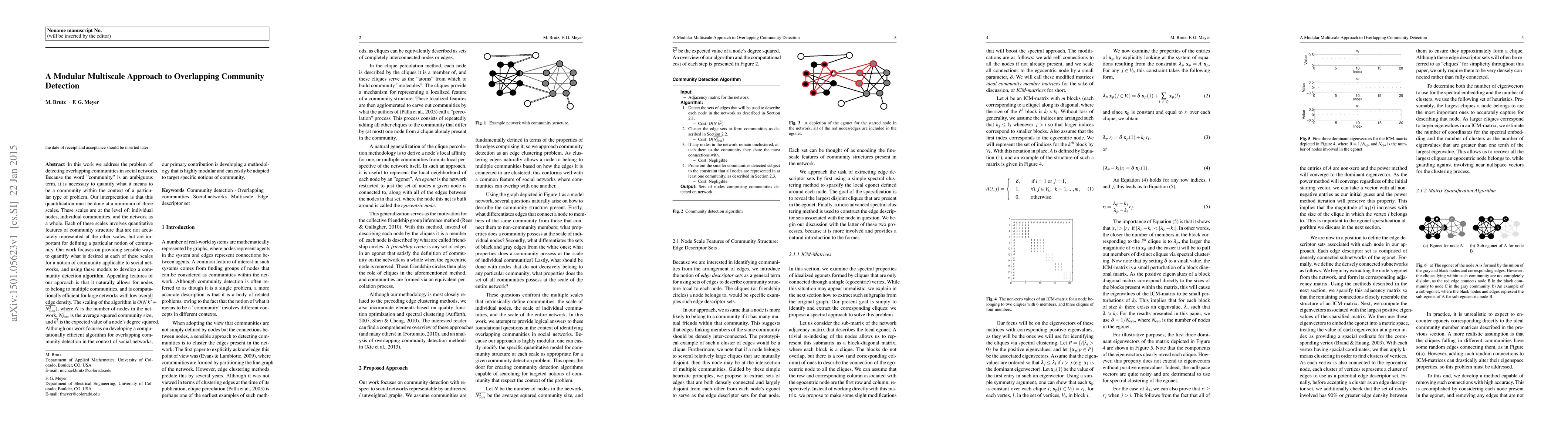 A new approach to detecting overlapping communities in social networks is proposed, focusing on a modular multiscale method that quantifies community structure at three scales: individual nodes, communities, and the network as a whole.