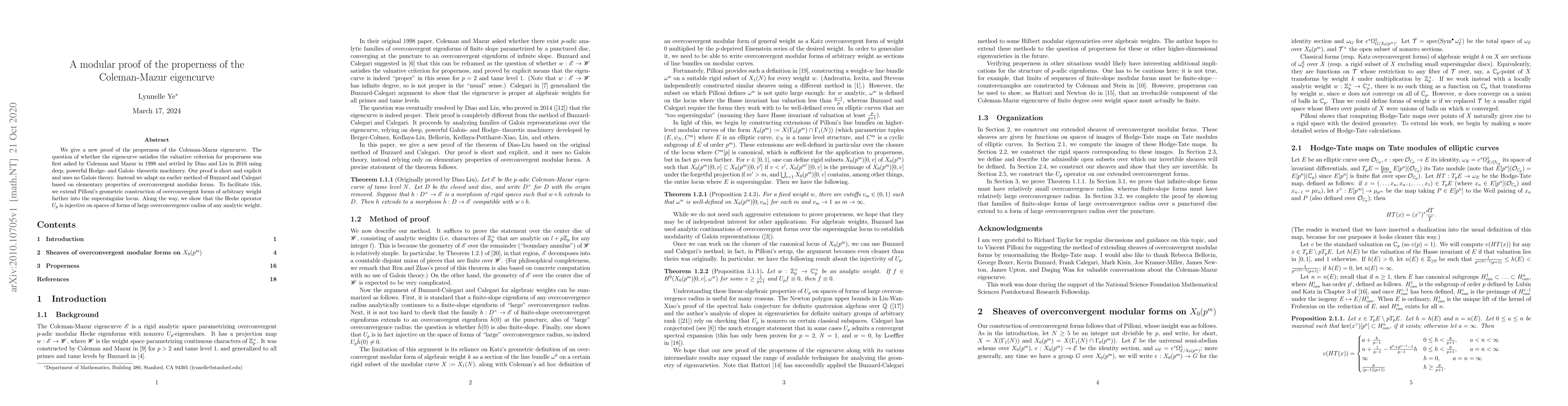 We give a new proof of the properness of the Coleman-Mazur eigencurve. The question of whether the eigencurve satisfies the valuative criterion for properness was first asked by Coleman and Mazur in 1998 and settled by Diao and Liu in 2016 using deep, powerful Hodge- and Galois- theoretic machinery. Our proof is short and explicit and uses no Galois theory. Instead we adapt an earlier method of Buzzard and Calegari based on elementary properties of overconvergent modular forms. To facilitate this, we extend Pilloni's geometric construction of overconvergent forms of arbitrary weight farther into the supersingular locus. Along the way, we show that the Hecke operator $U_p$ is injective on spaces of forms of large overconvergence radius of any analytic weight.