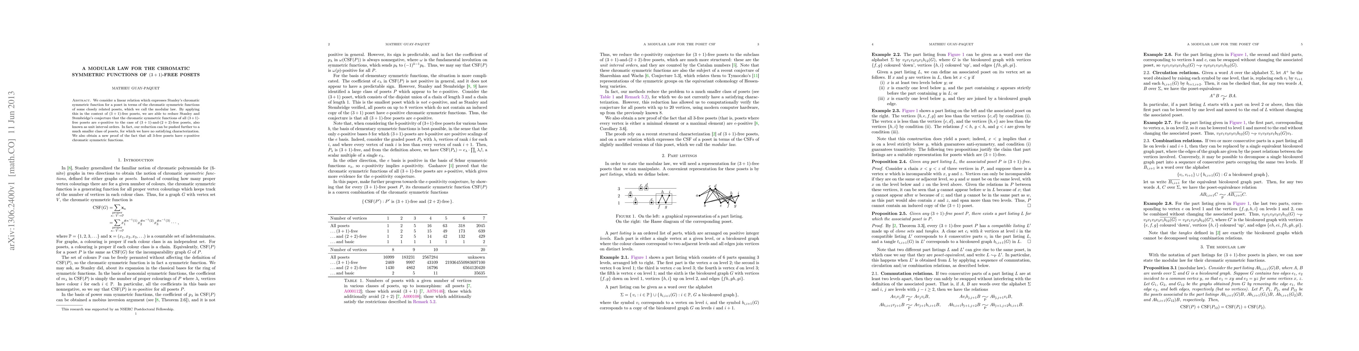 We consider a linear relation which expresses Stanley's chromatic symmetric function for a poset in terms of the chromatic symmetric functions of some closely related posets, which we call the modular law. By applying this in the context of (3+1)-free posets, we are able to reduce Stanley and Stembridge's conjecture that the chromatic symmetric functions of all (3+1)-free posets are e-positive to the case of (3+1)-and-(2+2)-free posets, also known as unit interval orders. In fact, our reduction can be pushed further to a much smaller class of posets, for which we have no satisfying characterization. We also obtain a new proof of the fact that all 3-free posets have e-positive chromatic symmetric functions.