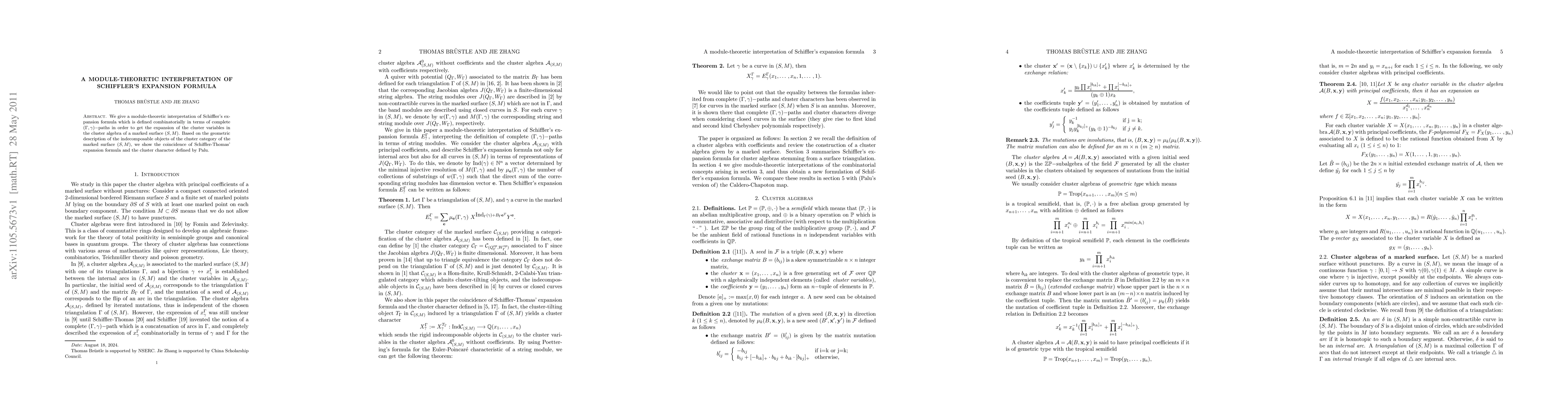 This paper provides a module-theoretic interpretation of Schiffler's combinatorially defined expansion formula for cluster variables in the cluster algebra of a marked surface. It demonstrates the equivalence between Schiffler-Thomas' expansion formula and Palu's cluster character based on the geometric description of objects in the cluster category.