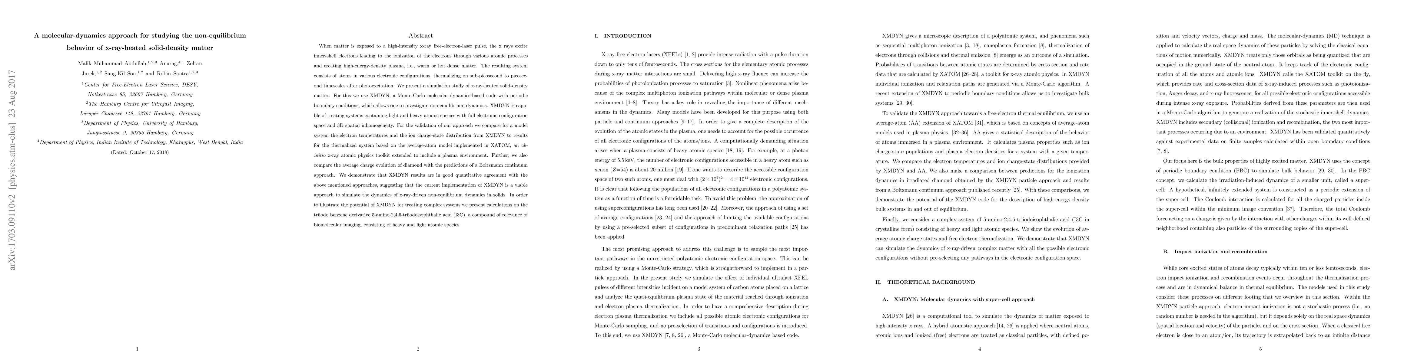 Researchers developed a molecular-dynamics approach to simulate the non-equilibrium behavior of x-ray-heated solid-density matter, achieving good agreement with other methods in validating its accuracy.
