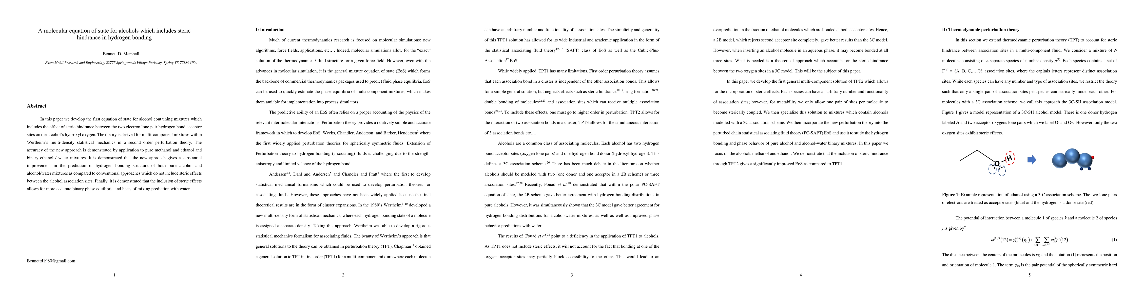 In this paper we develop the first equation of state for alcohol containing mixtures which includes the effect of steric hindrance between the two electron lone pair hydrogen bond acceptor sites on the alcohol's hydroxyl oxygen. The theory is derived for multi-component mixtures within Wertheim's multi-density statistical mechanics in a second order perturbation theory. The accuracy of the new approach is demonstrated by application to pure methanol and ethanol and binary ethanol / water mixtures. It is demonstrated that the new approach gives a substantial improvement in the prediction of hydrogen bond structure of both pure alcohol and alcohol / water mixtures as compared to standard first order approaches.