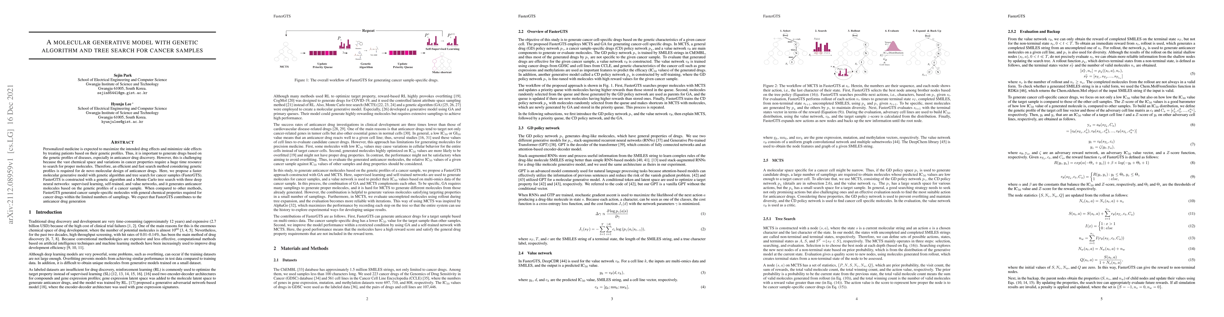 This paper proposes FasterGTS, a molecular generative model combining genetic algorithms and tree search to efficiently design anticancer drugs based on cancer patients' genetic profiles. FasterGTS utilizes deep neural networks to generate cancer-specific molecules within limited samplings, potentially expediting the discovery of effective anticancer treatments.