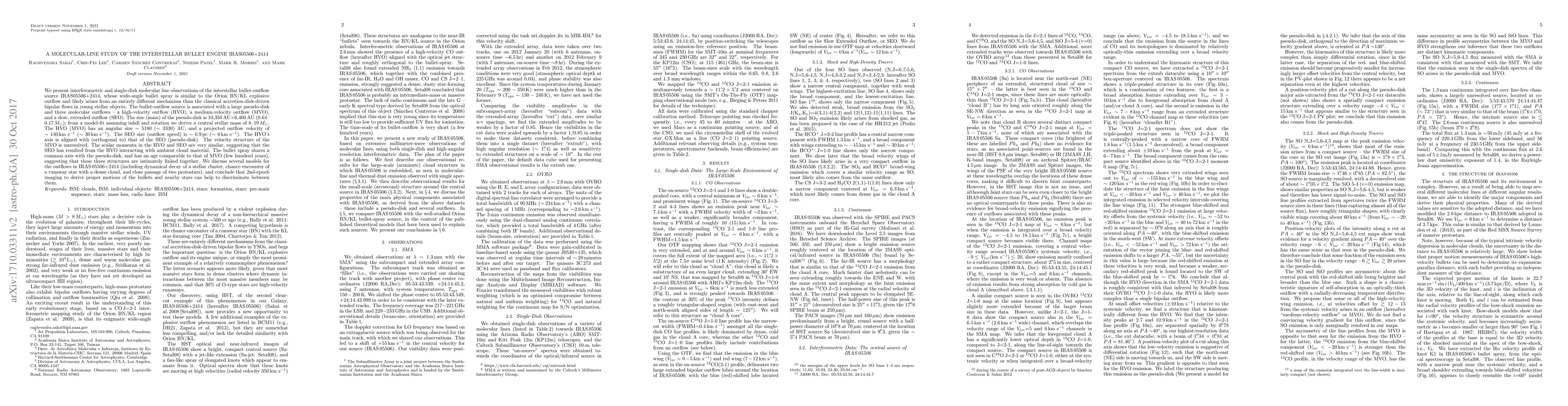 We present interferometric and single-dish molecular line observations of the interstellar bullet-outflow source IRAS 05506+2414, whose wide-angle bullet spray is similar to the Orion BN/KL explosive outflow and likely arises from an entirely different mechanism than the classical accretion-disk-driven bipolar flows in young stellar objects. The bullet-outflow source is associated with a large pseudo-disk and three molecular outflows -- a high-velocity outflow (HVO), a medium-velocity outflow (MVO), and a slow, extended outflow (SEO). The size (mass) of the pseudo-disk is 10,350 AU x 6,400 AU (0.64-0.17 Msun); from a model-fit assuming infall and rotation we derive a central stellar mass of 8--19 Msun. The HVO (MVO) has an angular size ~5180 (~3330) AU, and a projected outflow velocity of ~140 km/s (~30 km/s). The SEO size (outflow speed) is ~0.9 pc (~6 km/s). The HVO's axis is aligned with (orthogonal to) that of the SEO (pseudo-disk). The velocity structure of the MVO is unresolved. The scalar momenta in the HVO and SEO are very similar, suggesting that the SEO has resulted from the HVO interacting with ambient cloud material. The bullet spray shares a common axis with the pseudo-disk, and has an age comparable to that of MVO (few hundred years), suggesting that these three structures are intimately linked together. We discuss several models for the outflows in IRAS 05506+2414 (including dynamical decay of a stellar cluster, chance encounter of a runaway star with a dense cloud, and close passage of two protostars), and conclude that 2nd-epoch imaging to derive proper motions of the bullets and nearby stars can help to discriminate between them.