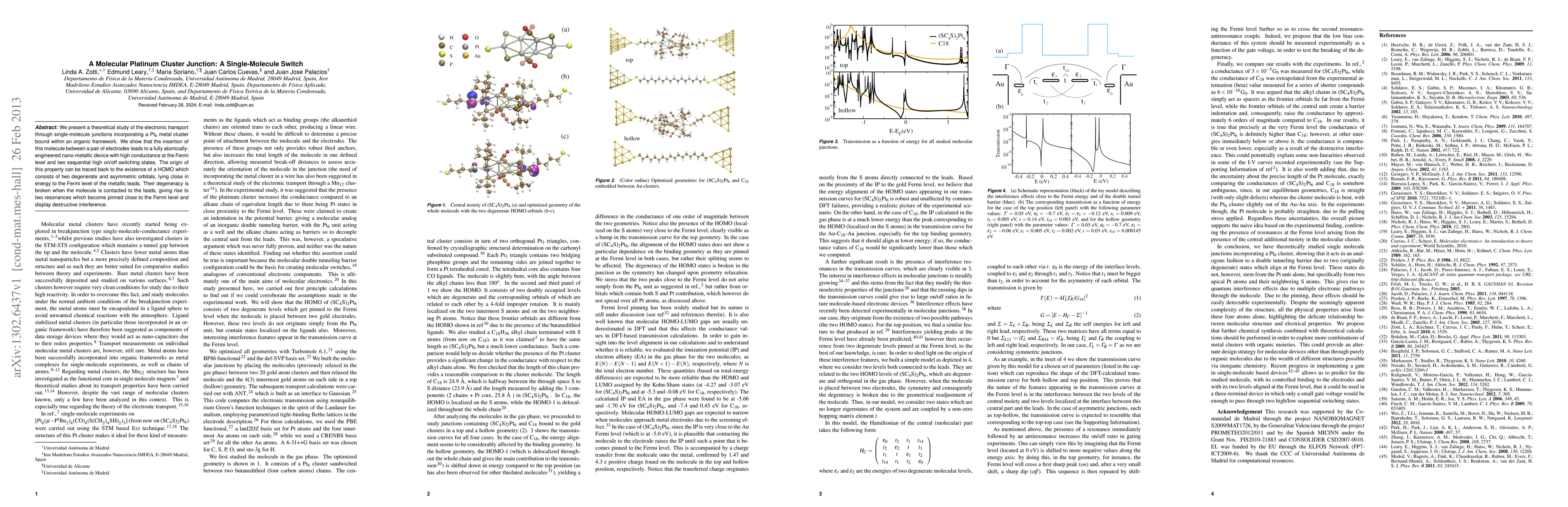 A molecular platinum cluster acts as a single-molecule switch, exhibiting high conductance at the Fermi level with two sequential on/off states due to degenerate orbitals breaking resonance.