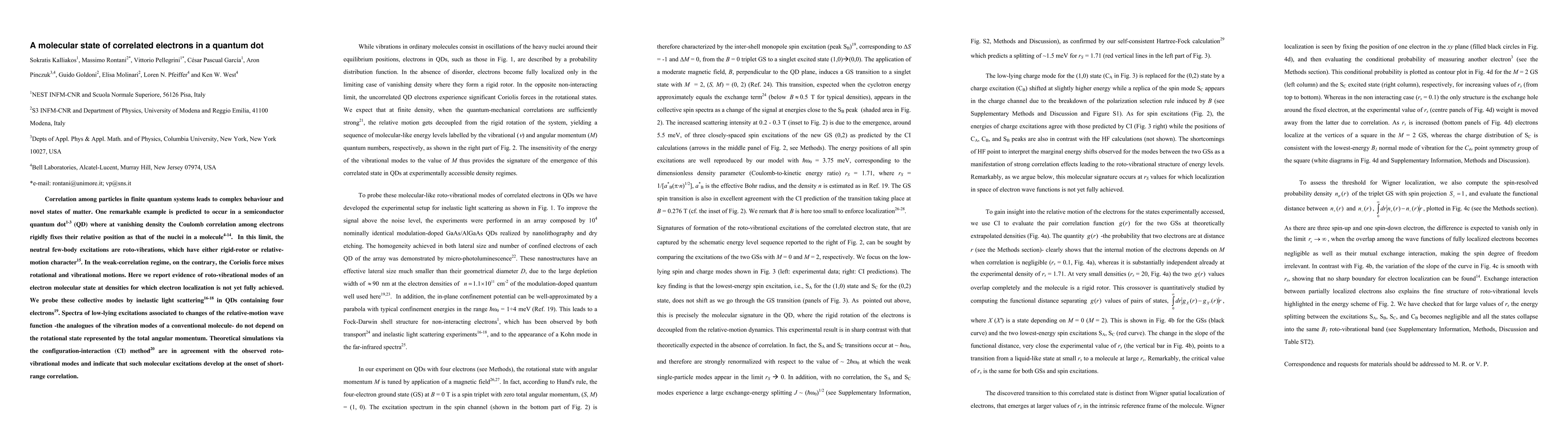 Researchers discovered roto-vibrational modes in a quantum dot with four electrons, where collective motion mimics that of a molecule, indicating the emergence of a correlated electron state.