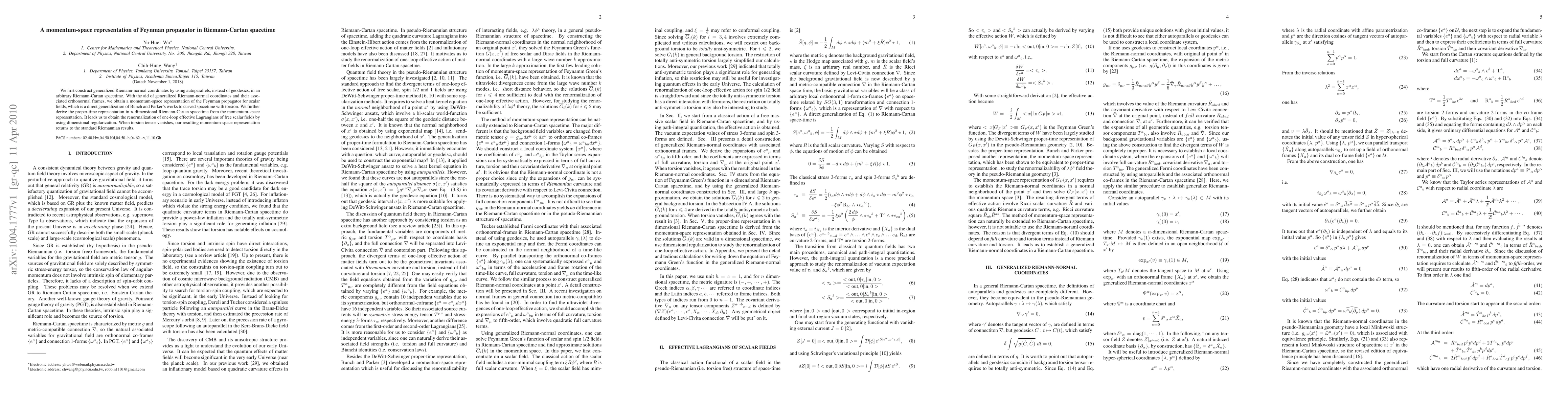 This paper constructs a momentum-space representation of the Feynman propagator for scalar fields in Riemann-Cartan spacetime using generalized Riemann-normal coordinates derived from autoparallels. It derives a proper-time representation and uses dimensional regularization to renormalize one-loop effective Lagrangians.