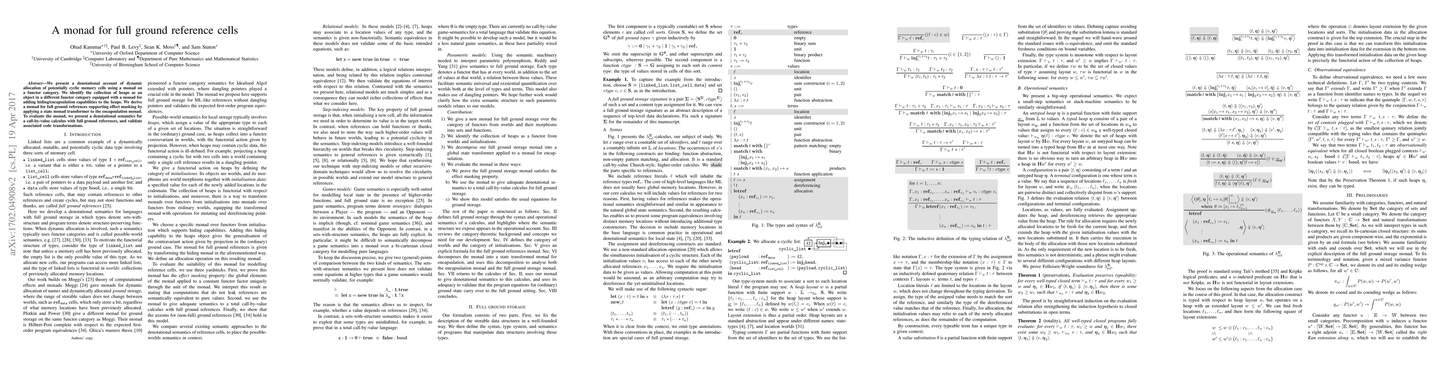 Researchers developed a monad for managing full ground reference cells in memory, enabling encapsulation capabilities and effect masking. The work provides a denotational semantics for a call-by-value calculus with this feature.