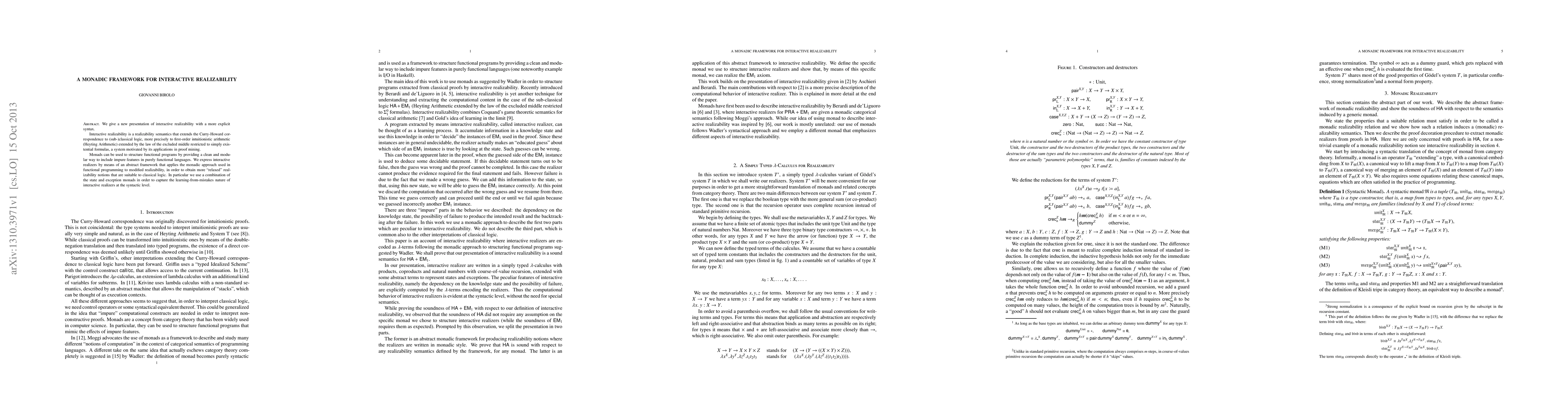 We give a new presentation of interactive realizability with a more explicit syntax. Interactive realizability is a realizability semantics that extends the Curry-Howard correspondence to (sub-)classical logic, more precisely to first-order intuitionistic arithmetic (Heyting Arithmetic) extended by the law of the excluded middle restricted to simply existential formulas, a system motivated by its applications in proof mining. Monads can be used to structure functional programs by providing a clean and modular way to include impure features in purely functional languages. We express interactive realizers by means of an abstract framework that applies the monadic approach used in functional programming to modified realizability, in order to obtain more "relaxed" realizability notions that are suitable to classical logic. In particular we use a combination of the state and exception monads in order to capture the learning-from-mistakes nature of interactive realizers at the syntactic level.