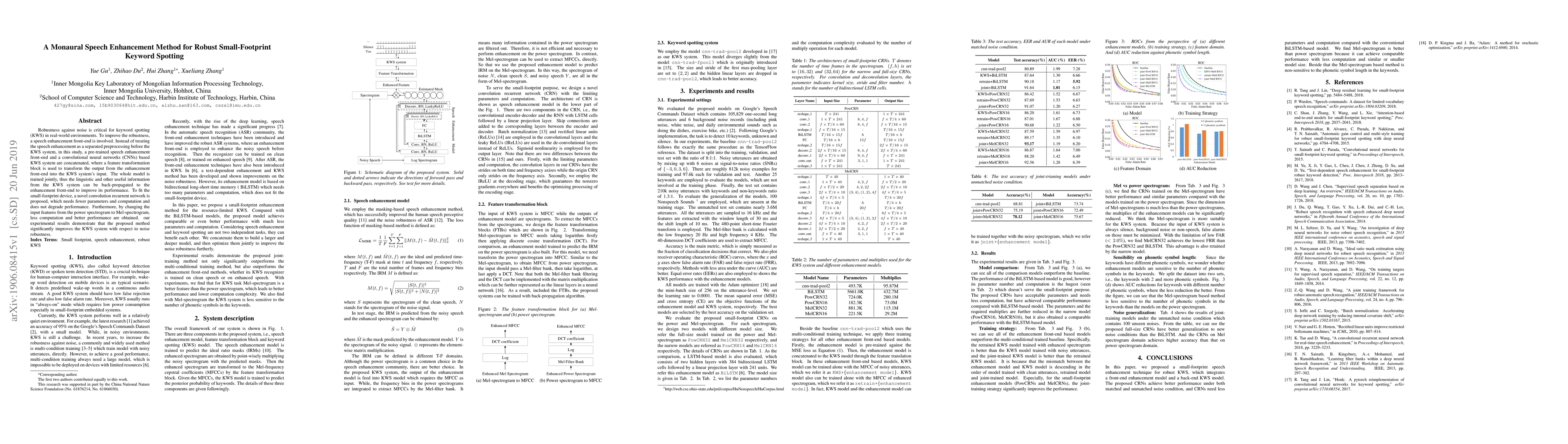 A new speech enhancement method improves keyword spotting systems' noise resistance, using a concatenated model that jointly trains linguistic and feature transformation components.