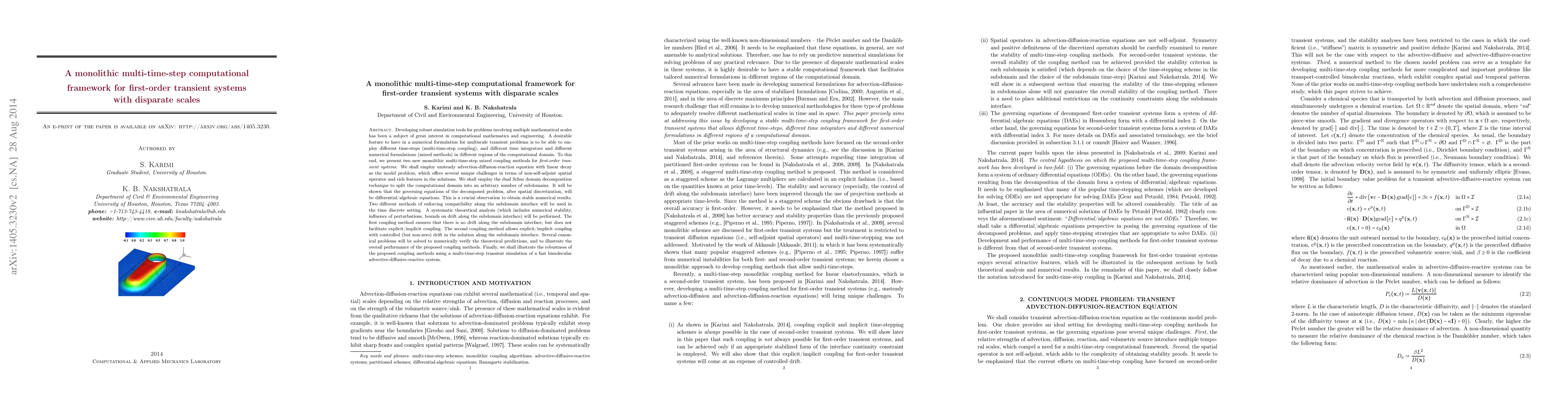 Developing robust simulation tools for problems involving multiple mathematical scales has been a subject of great interest in computational mathematics and engineering. A desirable feature to have in a numerical formulation for multiscale transient problems is to be able to employ different time-steps (multi-time-step coupling), and different time integrators and different numerical formulations (mixed methods) in different regions of the computational domain. We present two new monolithic multi-time-step mixed coupling methods for first-order transient systems. We shall employ unsteady advection-diffusion-reaction equation with linear decay as the model problem, which offers several unique challenges in terms of non-self-adjoint spatial operator and rich features in the solutions. We shall employ the dual Schur domain decomposition technique to handle the decomposition of domain into subdomains. Two different methods of enforcing compatibility along the subdomain interface will be used in the time discrete setting. A systematic theoretical analysis (which includes numerical stability, influence of perturbations, bounds on drift along the subdomain interface) will be performed. The first coupling method ensures that there is no drift along the subdomain interface but does not facilitate explicit/implicit coupling. The second coupling method allows explicit/implicit coupling with controlled (but non-zero) drift in the solution along the subdomain interface. Several canonical problems will be solved to numerically verify the theoretical predictions, and to illustrate the overall performance of the proposed coupling methods. Finally, we shall illustrate the robustness of the proposed coupling methods using a multi-time-step transient simulation of a fast bimolecular advective-diffusive-reactive system.