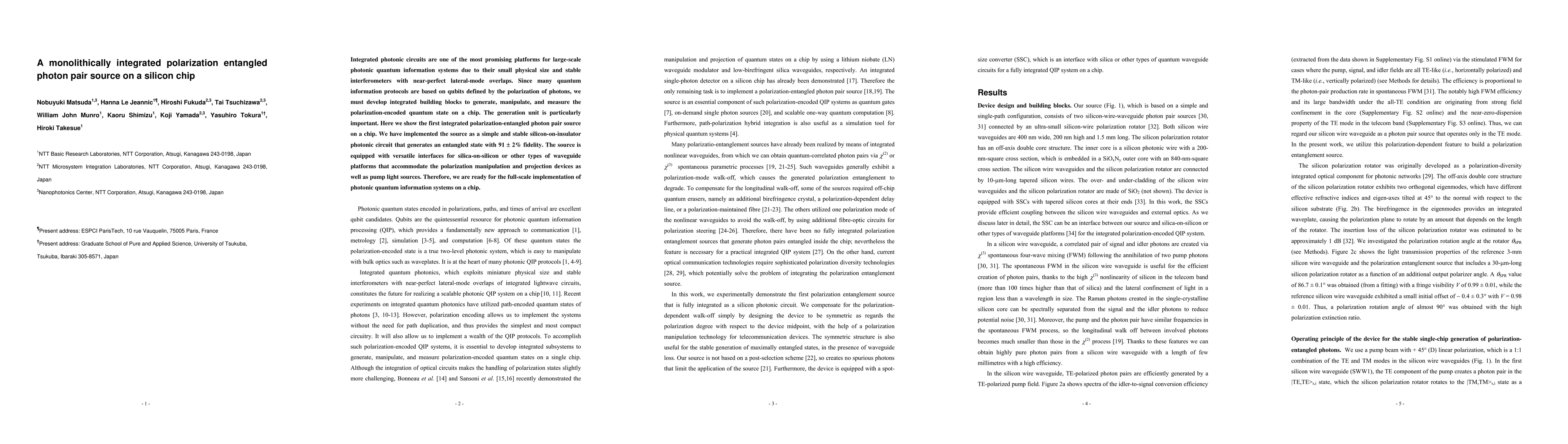 This research presents the first monolithically integrated polarization-entangled photon pair source on a silicon chip, achieving 91 ± 2% fidelity, and is designed for scalable photonic quantum information systems. The source features versatile interfaces compatible with various waveguide platforms, setting the stage for advanced quantum computing applications.