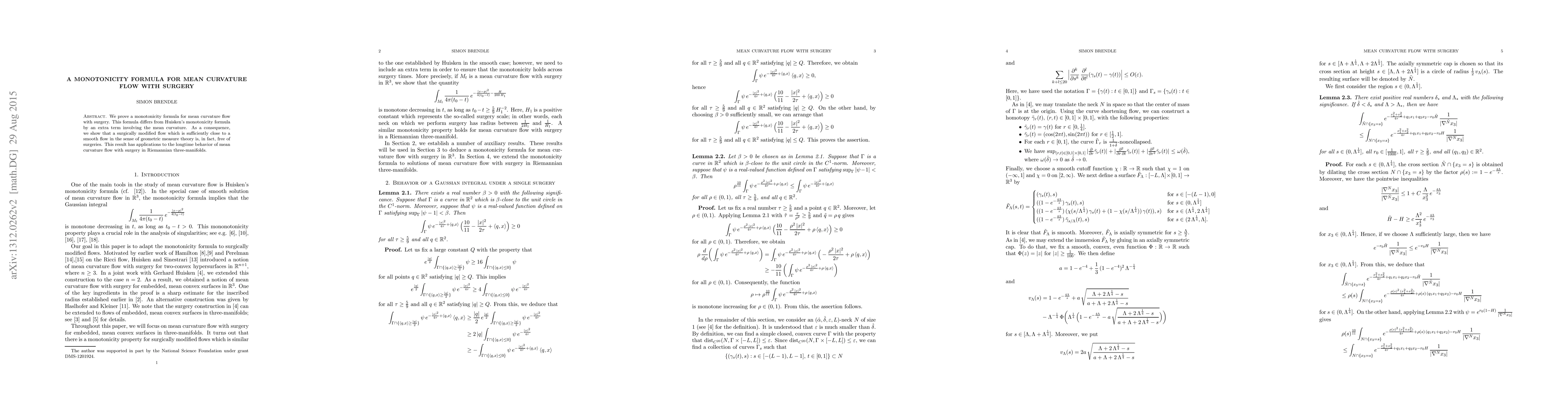 This paper proves a novel monotonicity formula for mean curvature flow with surgery, differing from Huisken's by an additional mean curvature term. The result shows that flows close to smooth ones in geometric measure theory are surgery-free, with implications for the long-term behavior of such flows in three-manifolds.