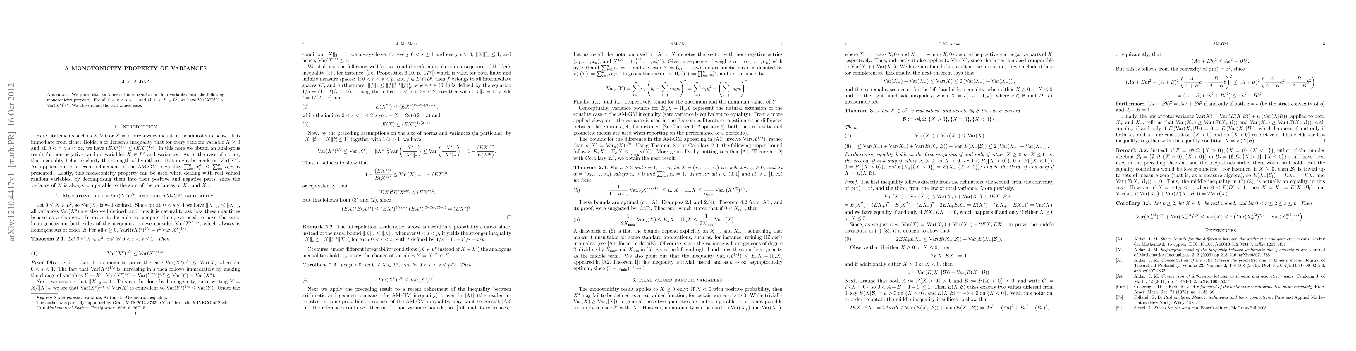 This research paper proves that for non-negative random variables, variances follow a monotonicity property where raising the variable to a power lessens its variance, especially when the original variance is lower.