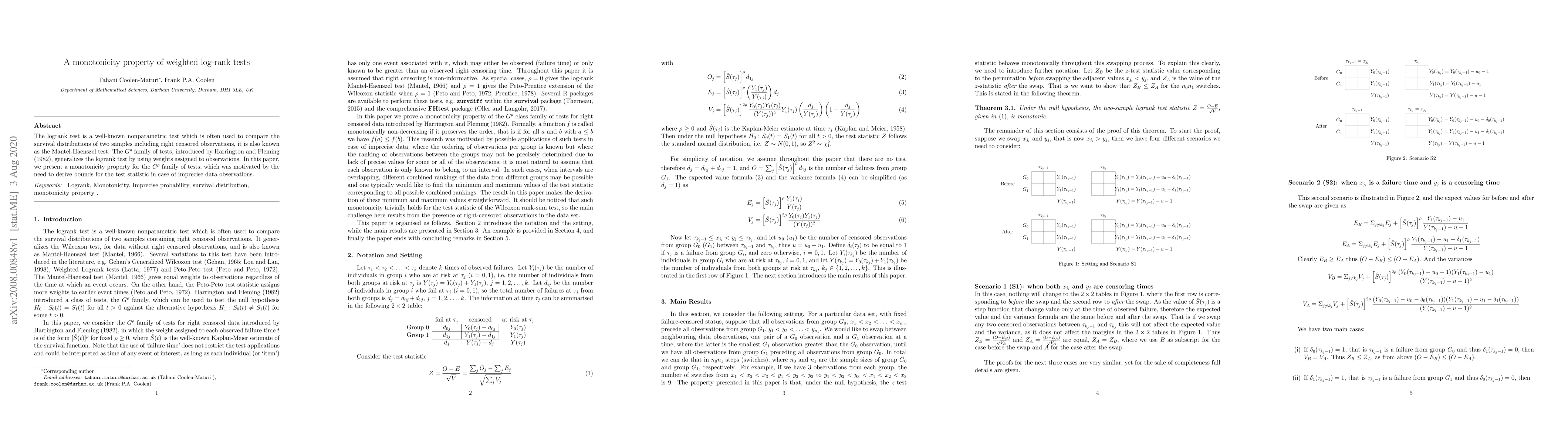 Researchers developed a monotonicity property for weighted log-rank tests to improve bounds on test statistics with imprecise data observations. This finding enhances the accuracy of survival distribution comparisons in medical research.