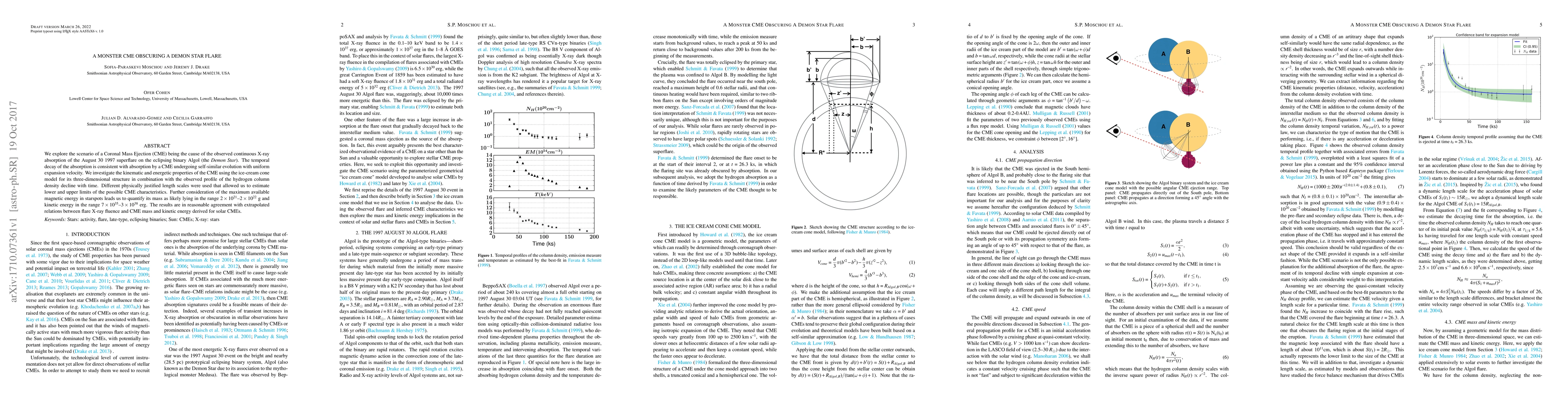 We explore the scenario of a Coronal Mass Ejection (CME) being the cause of the observed continuous X-ray absorption of the August 30 1997 superflare on the eclipsing binary Algol (the Demon Star). The temporal decay of the absorption is consistent with absorption by a CME undergoing self-similar evolution with uniform expansion velocity. We investigate the kinematic and energetic properties of the CME using the ice-cream cone model for its three-dimensional structure in combination with the observed profile of the hydrogen column density decline with time. Different physically justified length scales were used that allowed us to estimate lower and upper limits of the possible CME characteristics. Further consideration of the maximum available magnetic energy in starspots leads us to quantify its mass as likely lying in the range $2\times 10^{21}$-$2\times 10^{22}$ g and kinetic energy in the range $7\times 10^{35}$-$3\times 10^{38}$ erg. The results are in reasonable agreement with extrapolated relations between flare X-ray fluence and CME mass and kinetic energy derived for solar CMEs.