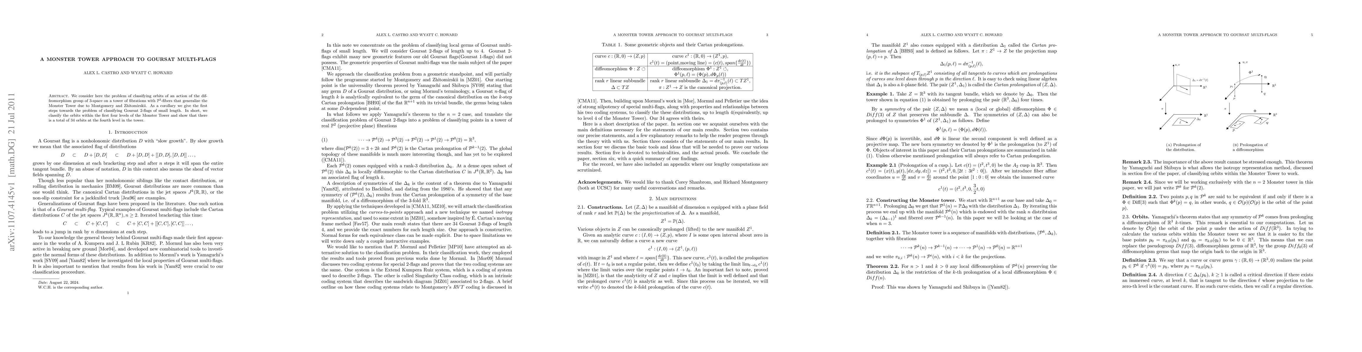 Researchers classify orbits of diffeomorphism group actions on a generalized Monster Tower, discovering 34 unique orbits at the fourth level, with implications for classifying Goursat flags of small length.