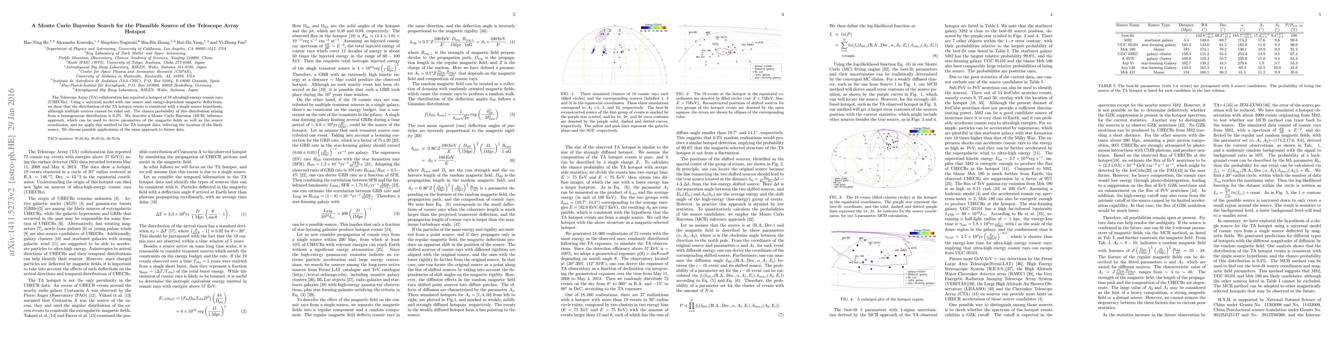 The Telescope Array (TA) collaboration has reported a hotspot of 19 ultrahigh-energy cosmic rays (UHECRs). Using a universal model with one source and energy-dependent magnetic deflections, we show that the distribution of the TA hotspot events is consistent with a single source hypothesis, although multiple sources cannot be ruled out. The chance probability of this distribution arising from a homogeneous distribution is $0.2\%$. We describe a Monte Carlo Bayesian (MCB) inference approach, which can be used to derive parameters of the magnetic fields as well as the source coordinates, and we apply this method to the TA hotspot data, inferring the location of the likely source. We discuss possible applications of the same approach to future data.
