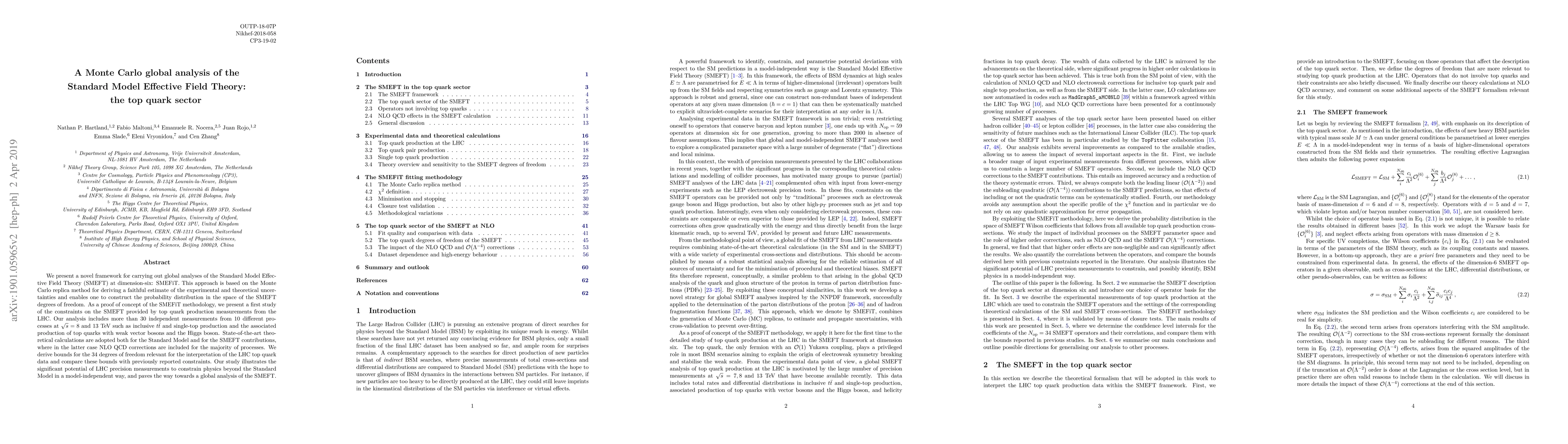 This paper introduces SMEFiT, a Monte Carlo framework for global analyses of the Standard Model Effective Field Theory (SMEFT) at dimension-six, focusing on the top quark sector. The study leverages LHC top quark measurements to constrain the 34 SMEFT degrees of freedom, demonstrating the potential of precision data to probe physics beyond the Standard Model.