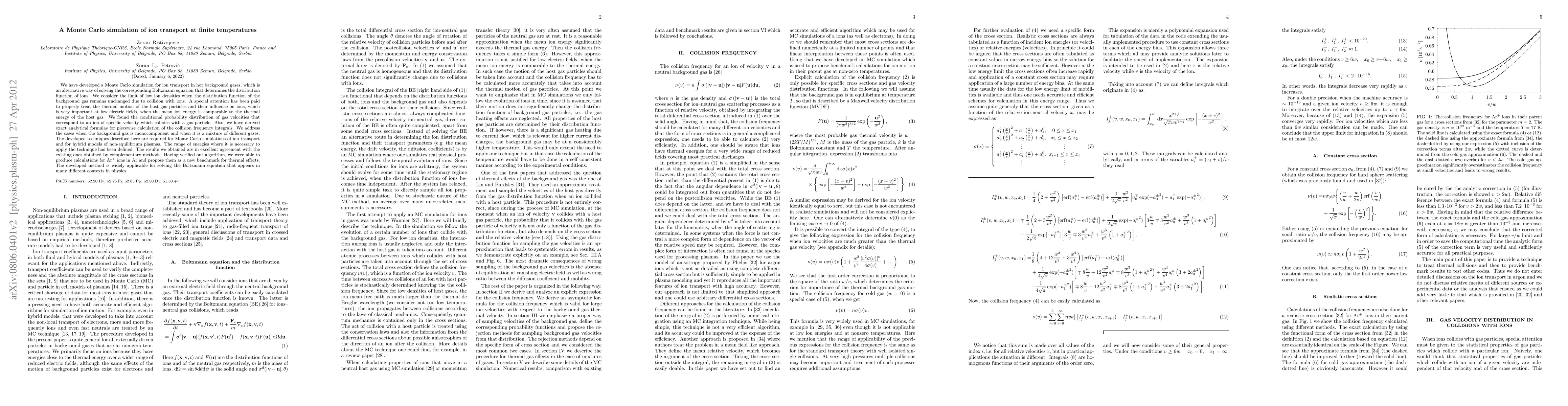 This paper develops a Monte Carlo simulation for ion transport in hot gases, focusing on low ion densities and the thermal motion of gas particles. It provides exact analytical formulas for collision frequency integrals and benchmarks Ar$^+$ ions in Ar, offering a new standard for thermal effects in ion transport.