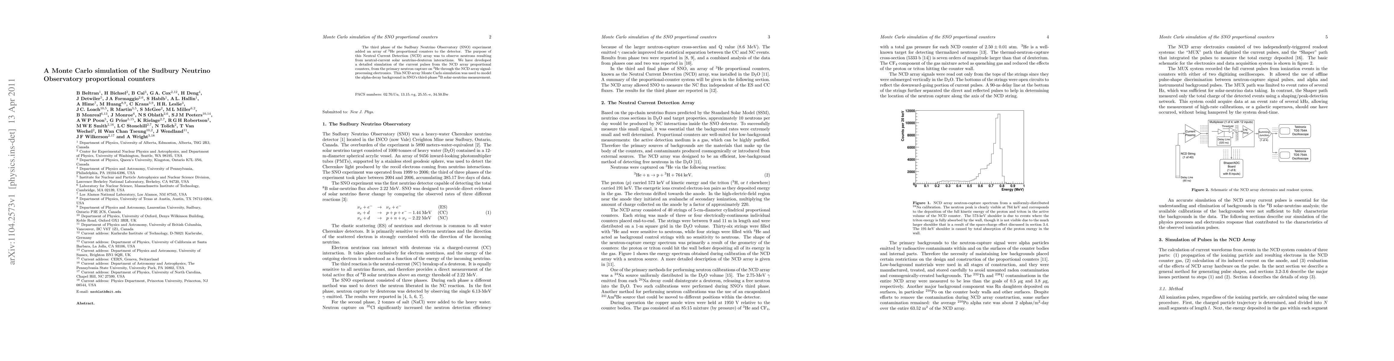 The third phase of the Sudbury Neutrino Observatory (SNO) experiment added an array of 3He proportional counters to the detector. The purpose of this Neutral Current Detection (NCD) array was to observe neutrons resulting from neutral-current solar neutrino-deuteron interactions. We have developed a detailed simulation of the current pulses from the NCD array proportional counters, from the primary neutron capture on 3He through the NCD array signal-processing electronics. This NCD array Monte Carlo simulation was used to model the alpha-decay background in SNO's third-phase 8B solar-neutrino measurement.