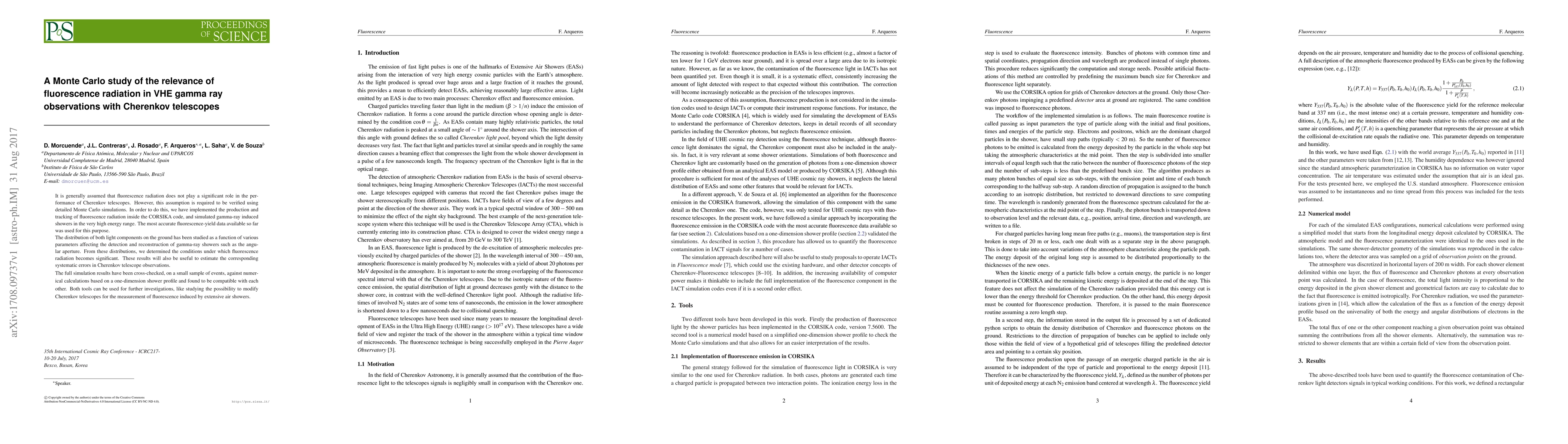 This Monte Carlo study investigates the relevance of fluorescence radiation in very high energy (VHE) gamma-ray observations using Cherenkov telescopes, finding that fluorescence can become significant under certain conditions, which may affect systematic errors in observations. The study uses detailed simulations within the CORSIKA code and cross-checks results with numerical calculations.