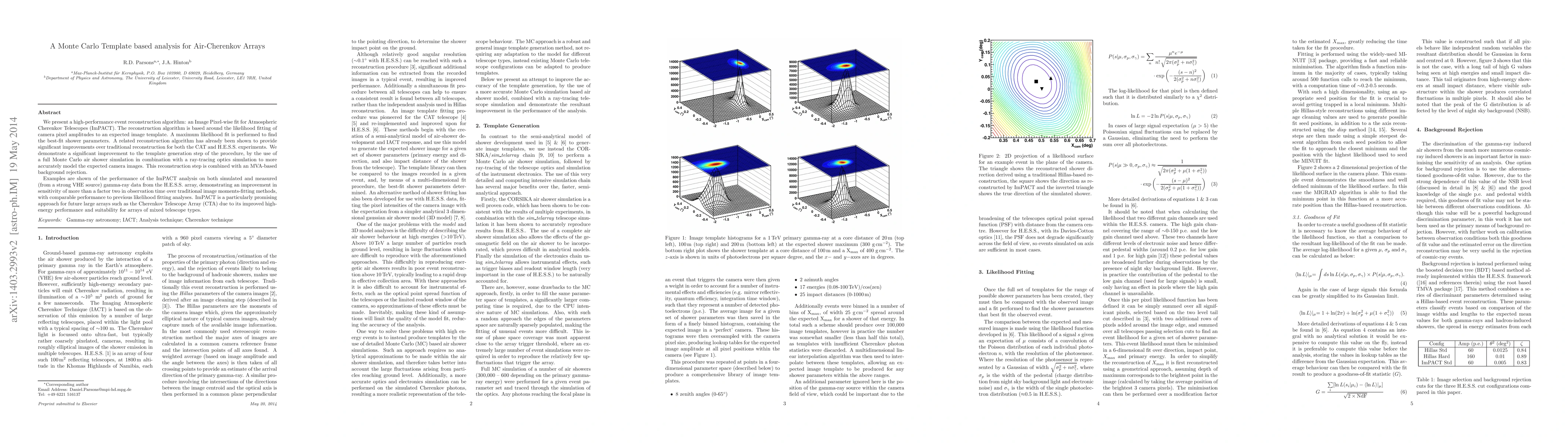 We present a high-performance event reconstruction algorithm: an Image Pixel-wise fit for Atmospheric Cherenkov Telescopes (ImPACT). The reconstruction algorithm is based around the likelihood fitting of camera pixel amplitudes to an expected image template. A maximum likelihood fit is performed to find the best-fit shower parameters. A related reconstruction algorithm has already been shown to provide significant improvements over traditional reconstruction for both the CAT and H.E.S.S. experiments. We demonstrate a significant improvement to the template generation step of the procedure, by the use of a full Monte Carlo air shower simulation in combination with a ray-tracing optics simulation to more accurately model the expected camera images. This reconstruction step is combined with an MVA-based background rejection. Examples are shown of the performance of the ImPACT analysis on both simulated and measured (from a strong VHE source) gamma-ray data from the H.E.S.S. array, demonstrating an improvement in sensitivity of more than a factor two in observation time over traditional image moments-fitting methods, with comparable performance to previous likelihood fitting analyses. ImPACT is a particularly promising approach for future large arrays such as the Cherenkov Telescope Array (CTA) due to its improved high-energy performance and suitability for arrays of mixed telescope types.