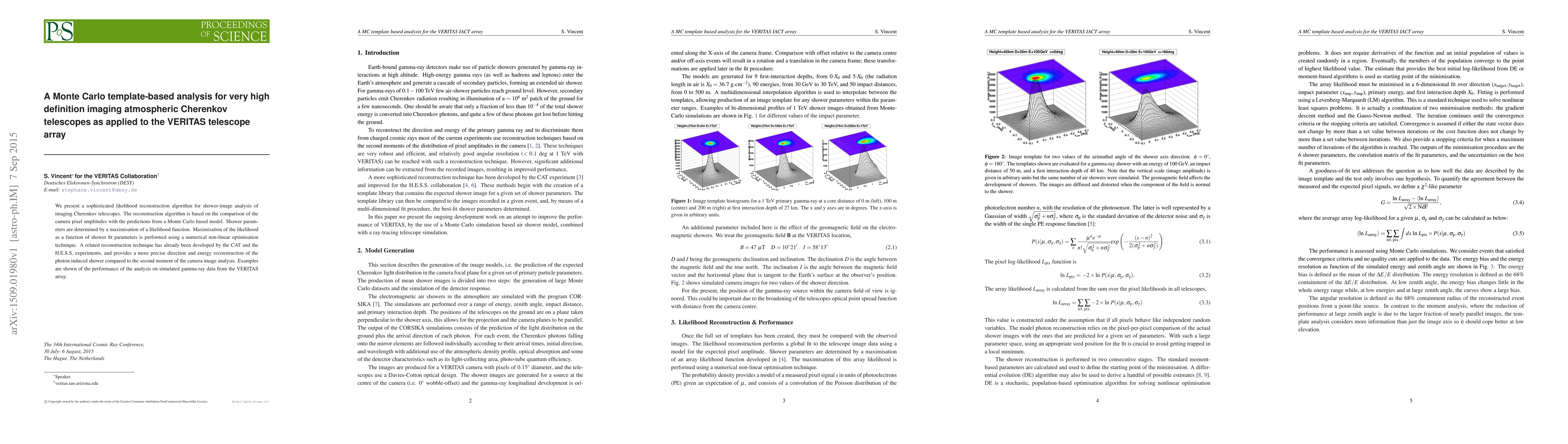 This paper introduces a Monte Carlo template-based likelihood reconstruction algorithm for the VERITAS telescope array, enhancing the precision of direction and energy reconstruction in imaging atmospheric Cherenkov telescopes. The method outperforms traditional camera image analysis by maximizing a likelihood function through non-linear optimization.