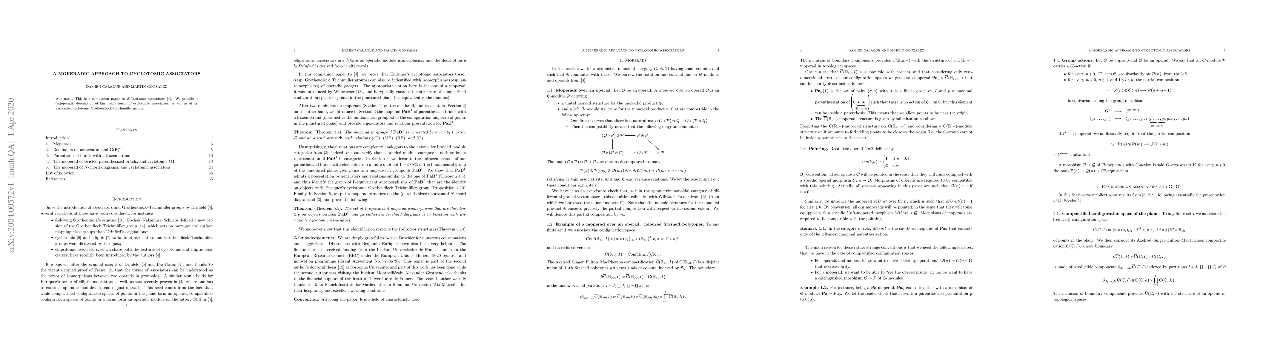 The paper adopts a moperadic approach to describe Enriquez's torsor of cyclotomic associators and its associated cyclotomic Grothendieck-Teichmüller groups, utilizing operadic structures and group actions.