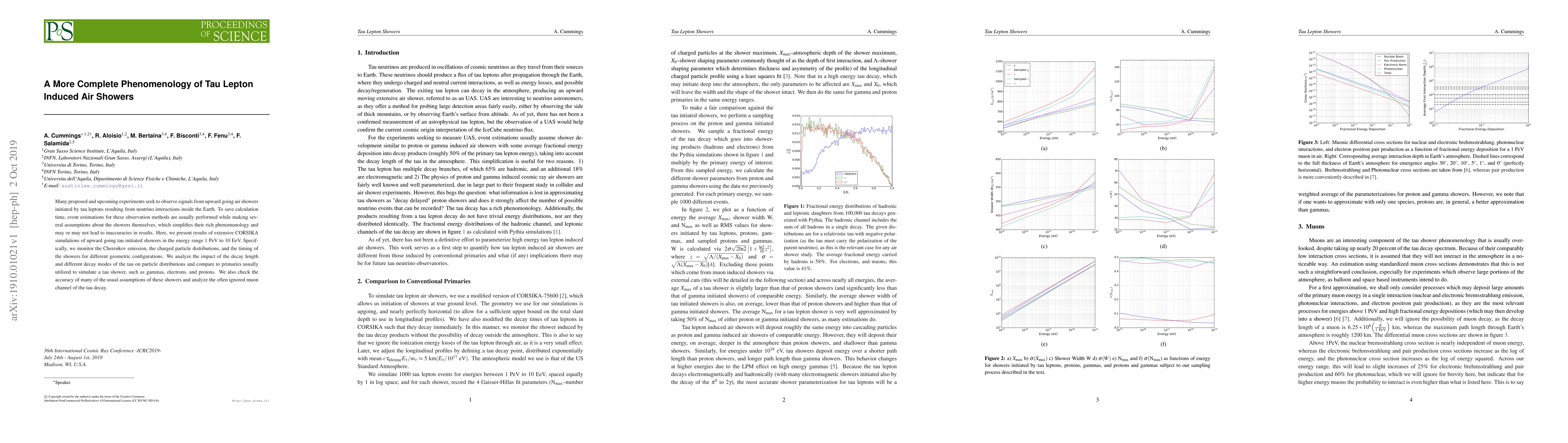 Many proposed and upcoming experiments seek to observe signals from upward going air showers initiated by tau leptons resulting from neutrino interactions inside the Earth. To save calculation time, event estimations for these observation methods are usually performed while making several assumptions about the showers themselves, which simplifies their rich phenomenology and may or may not lead to inaccuracies in results. Here, we present results of extensive CORSIKA simulations of upward going tau initiated showers in the energy range 1 PeV to 10 EeV. Specifically, we monitor the Cherenkov emission, the charged particle distributions, and the timing of the showers for different geometric configurations. We analyze the impact of the decay length and different decay modes of the tau on particle distributions and compare to primaries usually utilized to simulate a tau shower, such as gammas, electrons, and protons. We also check the accuracy of many of the usual assumptions of these showers and analyze the often ignored muon channel of the tau decay.