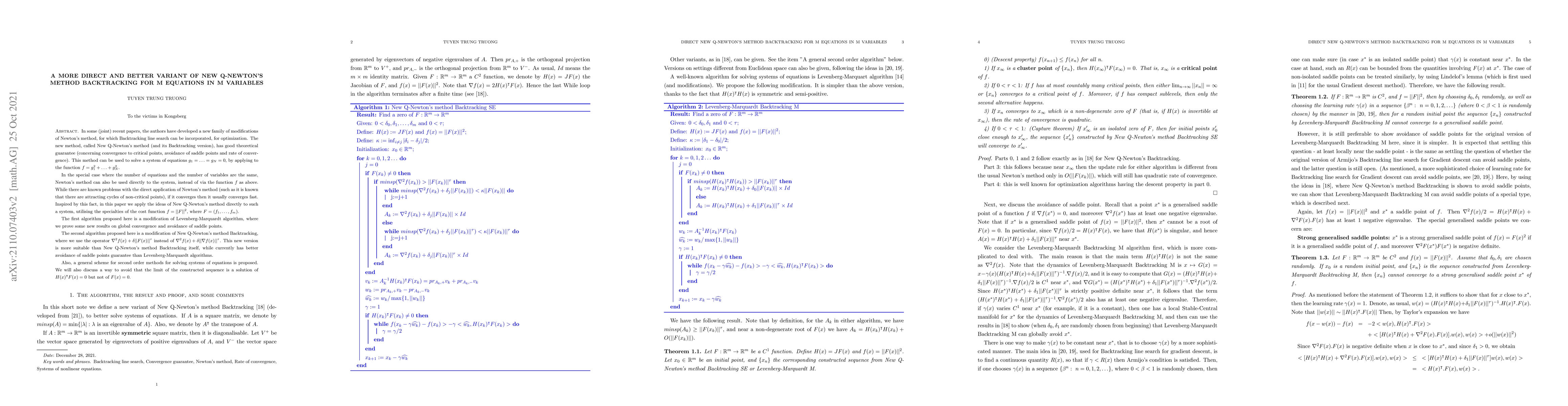 This paper proposes two new algorithms for solving systems of equations: a modified Levenberg-Marquardt method with improved global convergence and saddle point avoidance, and a refined version of New Q-Newton's method Backtracking that better avoids saddle points.