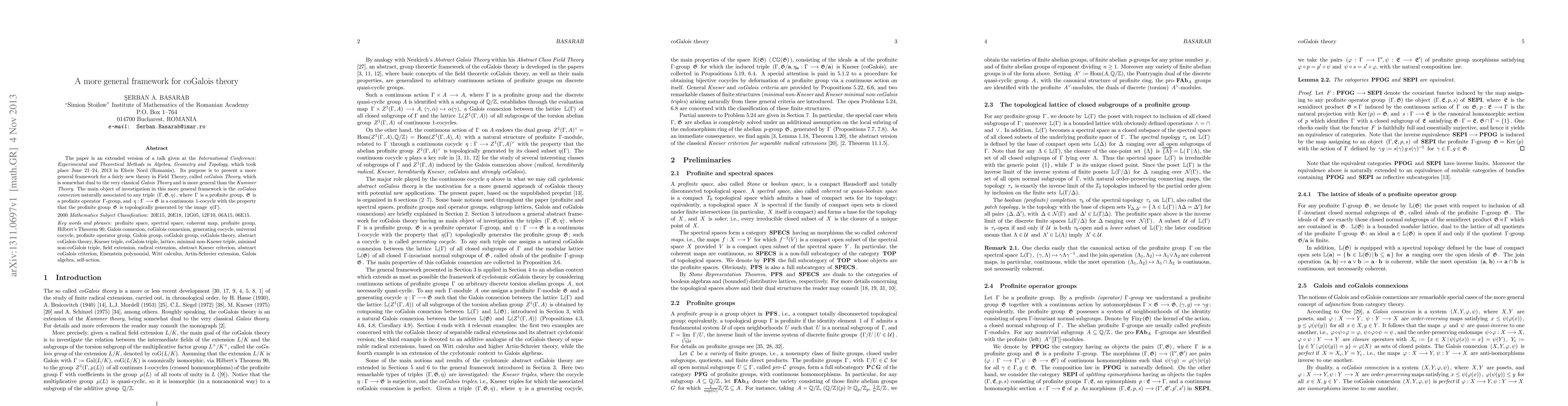 The paper is an extended version of a talk given at the International Conference: Experimental and Theoretical Methods in Algebra, Geometry and Topology, which took place June 21--24, 2013 in Eforie Nord (Romania). Its purpose is to present a more general framework for a fairly new theory in Field Theory, called coGalois Theory, which is somewhat dual to the very classical Galois Theory and is more general than the Kummer Theory. The main object of investigation in this more general framework is the coGalois connexion naturally associated to any triple $\,(\Gamma, \frak{G}, \eta)\,$, where $\,\Gamma\,$ is a profinite group, $\,\frak{G}\,$ is a profinite operator $\,\Gamma$-group, and $\,\eta: \Gamma \longrightarrow \frak{G}\,$ is a continuous $\,1$-cocycle with the property that the profinite group $\,\frak{G}\,$ is topologically generated by the image $\,\eta(\Gamma)$.