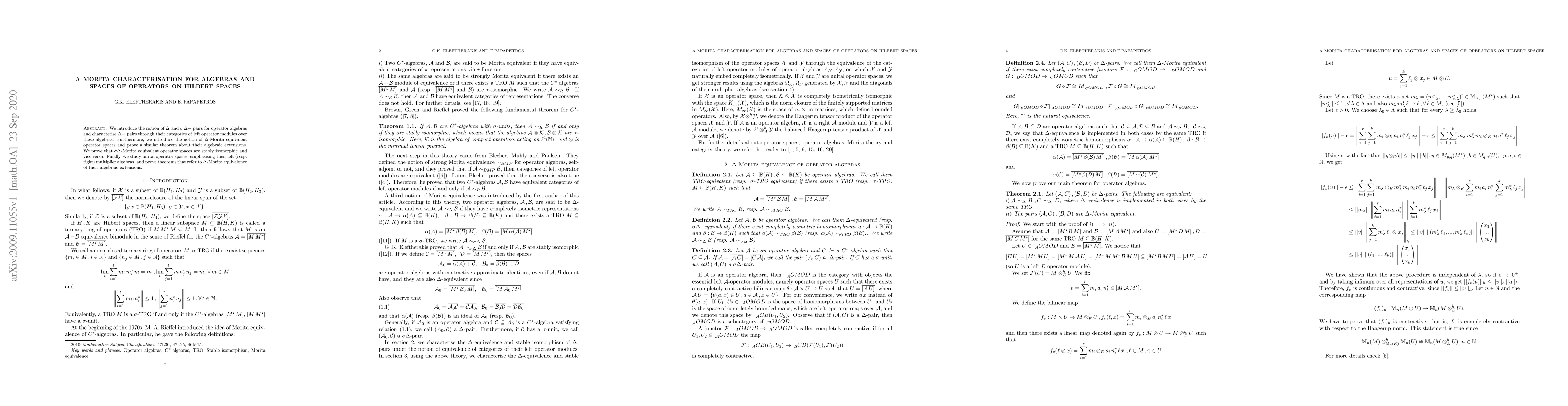 This paper introduces $\Delta$ and $\sigma\,\Delta$-pairs for operator algebras, characterizing them via their categories of left operator modules. It also establishes $\Delta$-Morita equivalence for operator spaces and proves that $\sigma\Delta$-Morita equivalence implies stable isomorphism, focusing on unital operator spaces and their multiplier algebras.