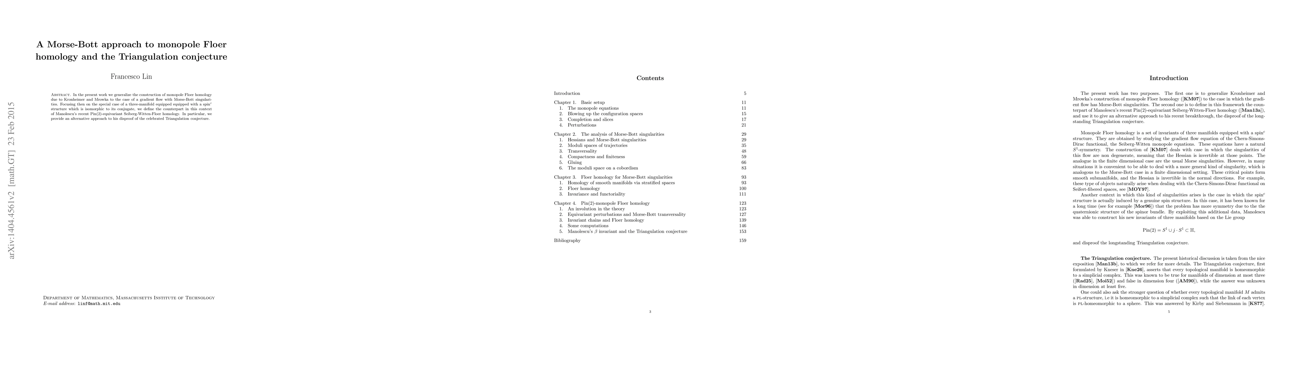 This paper generalizes the construction of monopole Floer homology to accommodate Morse-Bott singularities and applies it to disprove the Triangulation conjecture, providing a new $\mathrm{Pin}(2)$-equivariant perspective on Seiberg-Witten-Floer homology.