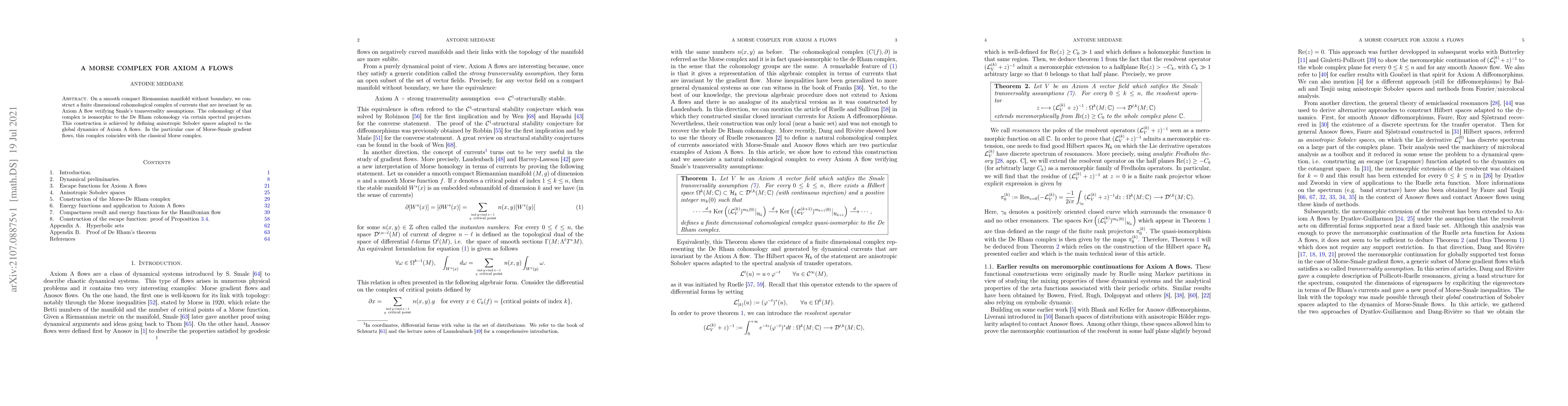 The introduction of anisotropic Sobolev spaces and the construction of a Morse-like complex for Axiom A flows under Smale's transversality conditions.