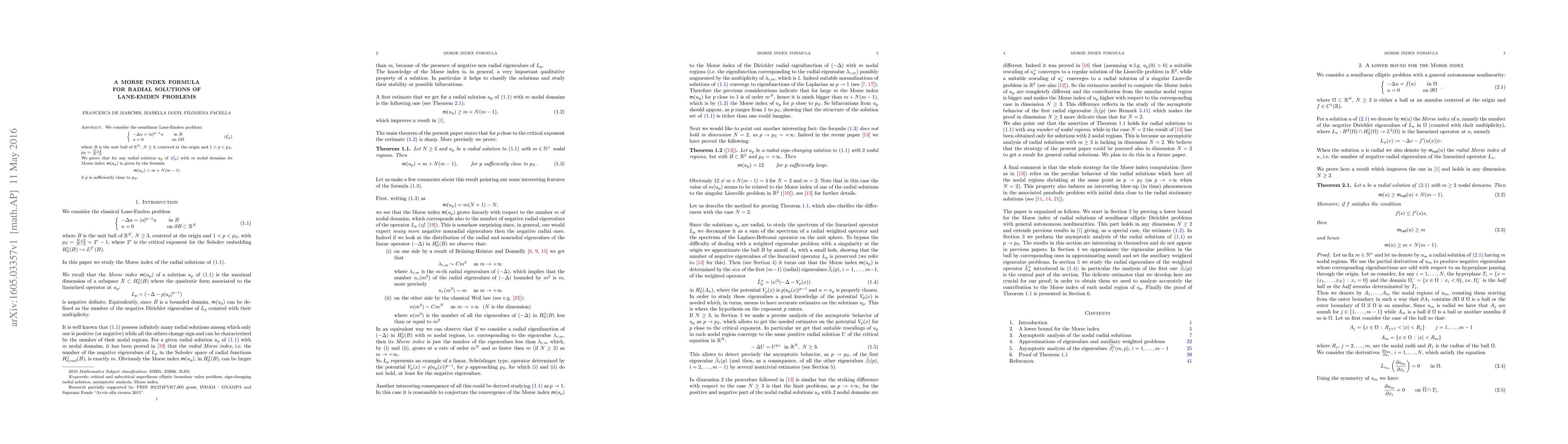 Researchers develop a Morse index formula to analyze radial solutions of Lane-Emden problems, showing that for certain conditions, the formula relates the number of nodal domains to the solution's index.