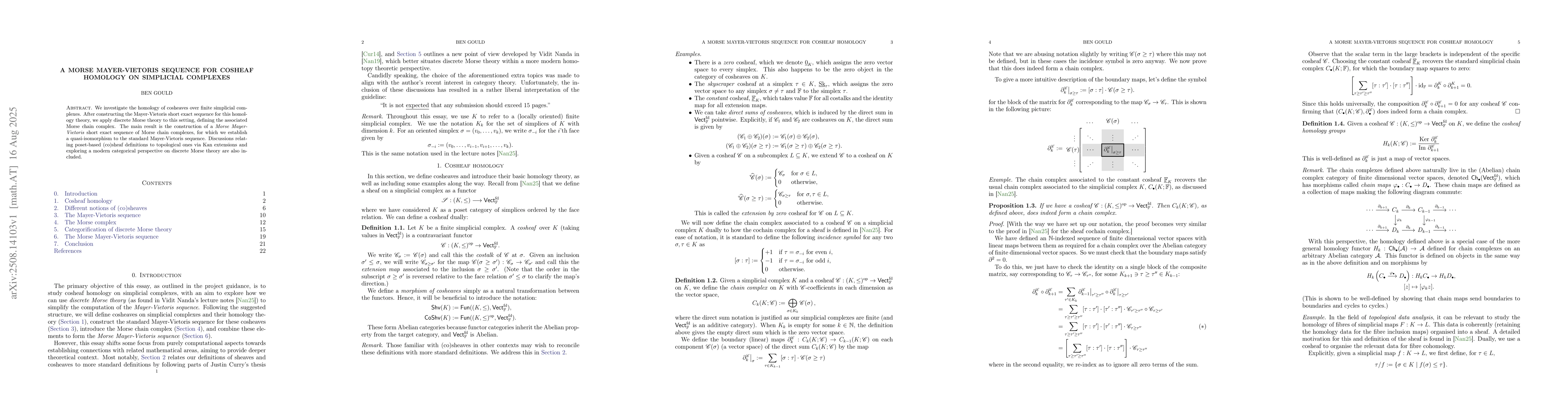 We investigate the homology of cosheaves over finite simplicial complexes. After constructing the Mayer-Vietoris short exact sequence for this homology theory, we apply discrete Morse theory to this setting, defining the associated Morse chain complex. The main result is the construction of a Morse Mayer-Vietoris short exact sequence of Morse chain complexes, for which we establish a quasi-isomorphism to the standard Mayer-Vietoris sequence. Discussions relating poset-based (co)sheaf definitions to topological ones via Kan extensions and exploring a modern categorical perspective on discrete Morse theory are also included.