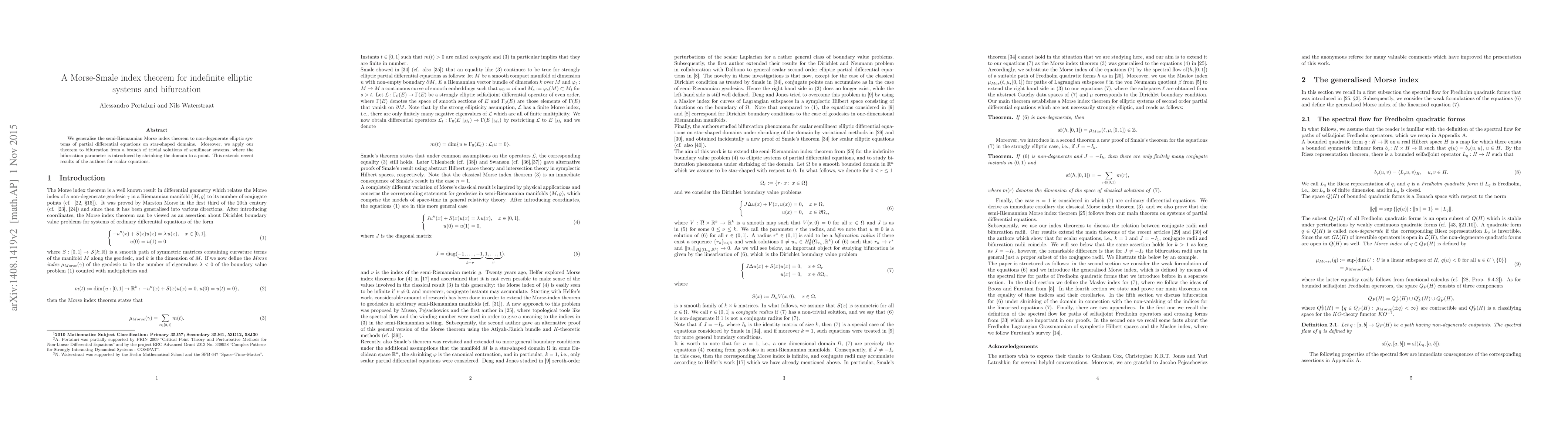 This paper generalises the semi-Riemannian Morse index theorem to indefinite elliptic systems of partial differential equations on star-shaped domains. It applies this theorem to bifurcation analysis, extending previous results for scalar equations by considering bifurcation from trivial solutions as the domain shrinks to a point.