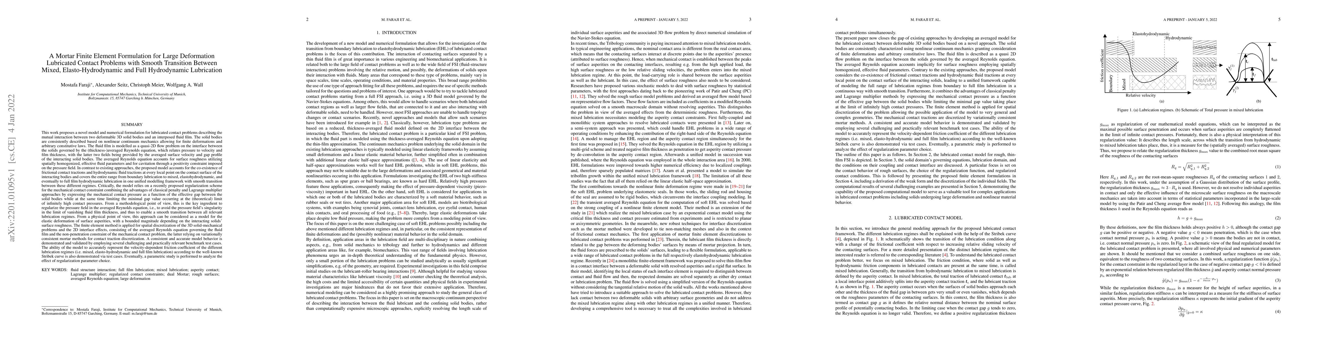 This work proposes a novel model and numerical formulation for lubricated contact problems describing the mutual interaction between two deformable 3D solid bodies and an interposed fluid film. The solid bodies are consistently described based on nonlinear continuum mechanics allowing for finite deformations and arbitrary constitutive laws. The fluid film is modelled as a quasi-2D flow problem on the interface between the solids governed by the averaged Reynolds equation. The averaged Reynolds equation accounts for surface roughness utilizing spatially homogenized, effective fluid parameters and for cavitation through a positivity constraint imposed on the pressure field. In contrast to existing approaches, the proposed model accounts for the co-existence of frictional contact tractions and hydrodynamic fluid tractions at every local point on the contact surface of the interacting bodies and covers the entire range from boundary lubrication to mixed, elastohydrodynamic, and eventually to full film hydrodynamic lubrication in one unified modelling framework with smooth transition between these different regimes. Critically, the model relies on a recently proposed regularization scheme for the mechanical contact constraint combining the advantages of classical penalty and Lagrange multiplier approaches by expressing the mechanical contact pressure as a function of the effective gap between the solid bodies while at the same time limiting the minimal gap value occurring at the (theoretical) limit of infinitely high contact pressures. From a physical point of view, this approach can be considered as a model for the elastic deformation of surface asperities, with a bounded magnitude depending on the interacting solids' surface roughness. A consistent and accurate model behavior is demonstrated and validated by employing several challenging and practically relevant benchmark test cases.