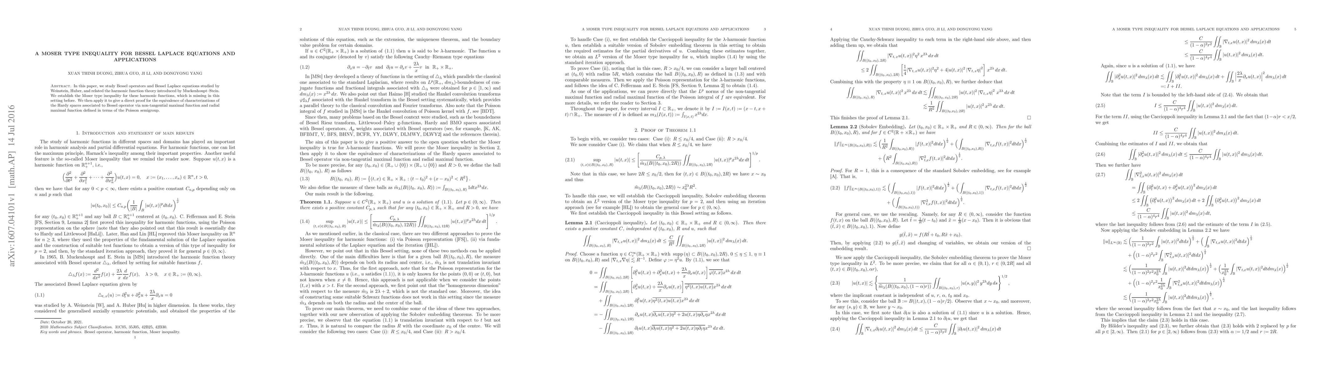 In this paper, we study Bessel operators and Bessel Laplace equations studied by Weinstein, Huber, and related the harmonic function theory introduced by Muckenhoupt--Stein. We establish the Moser type inequality for these harmonic functions, which is missing in this setting before. We then apply it to give a direct proof for the equivalence of characterizations of the Hardy spaces associated to Bessel operator via non-tangential maximal function and radial maximal function defined in terms of the Poisson semigroup.