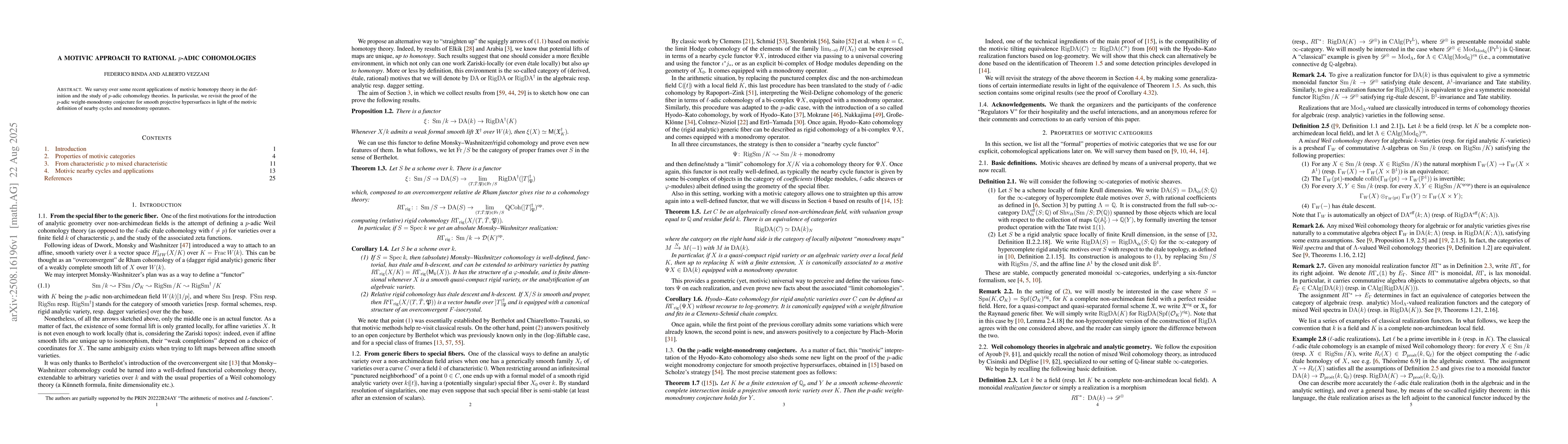 We survey over some recent applications of motivic homotopy theory in the definition and the study of $p$-adic cohomology theories. In particular, we revisit the proof of the $p$-adic weight-monodromy conjecture for smooth projective hypersurfaces in light of the motivic definition of nearby cycles and monodromy operators.