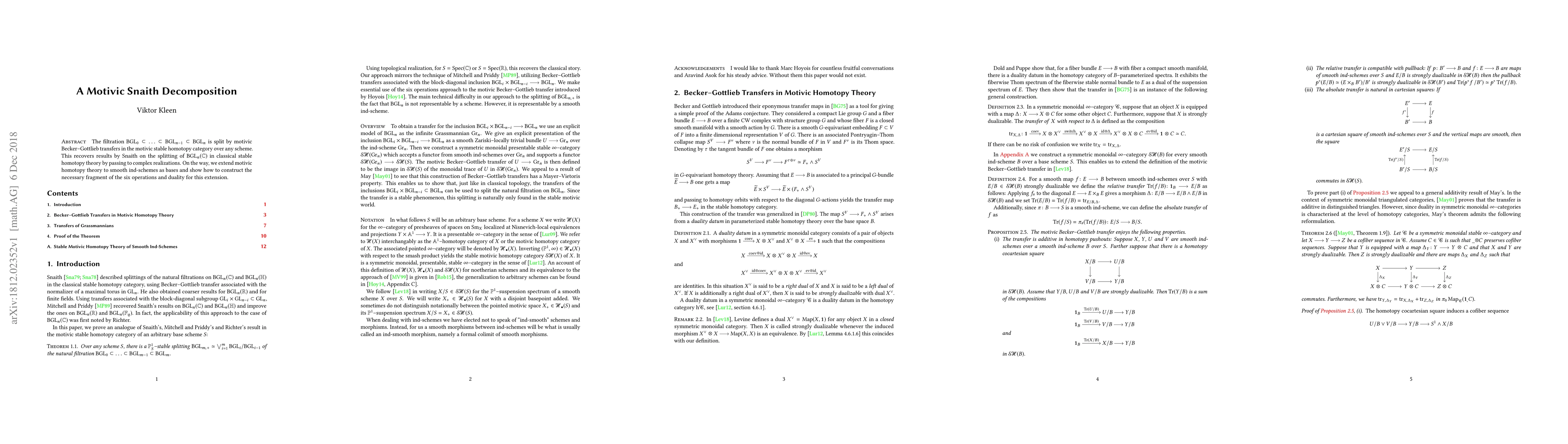 Researchers demonstrate that motivic Becker-Gottlieb transfers can split the filtration of BGL groups in motivic stable homotopy theory, recovering Snaith's results on classical stable homotopy theory by extension to complex realizations.