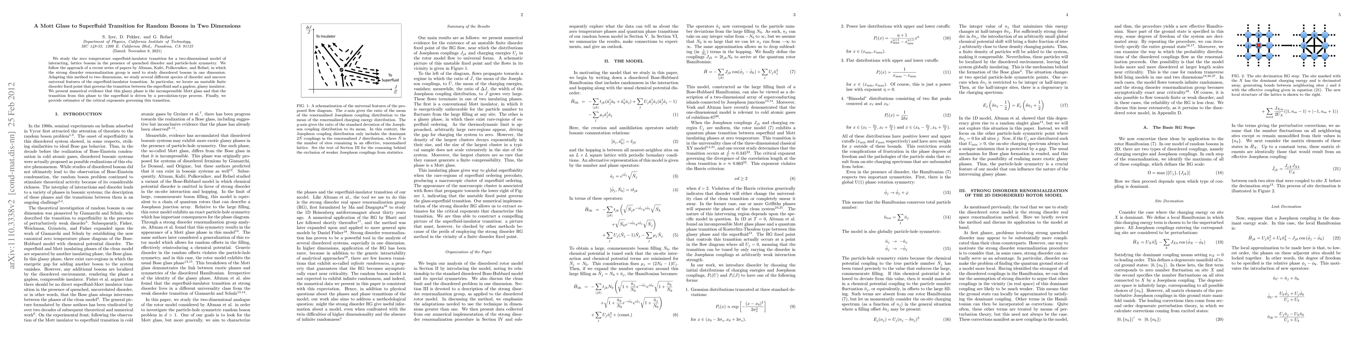 This paper investigates the superfluid-insulator transition in a two-dimensional lattice of interacting bosons under quenched disorder using the strong disorder renormalization group. It identifies an unstable fixed point characterizing the transition to a gapless, glassy Mott insulator phase, and provides numerical evidence and critical exponents for this percolation-driven transition.