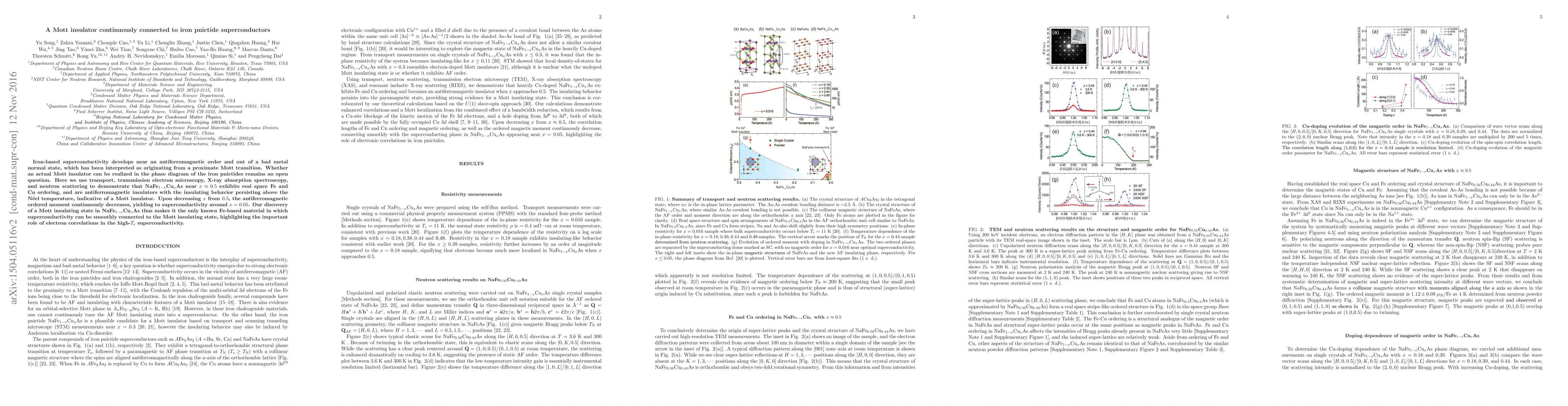 This paper demonstrates that NaFe$_{1-x}$Cu$_x$As near $x\approx 0.5$ exhibits Mott insulating behavior, characterized by antiferromagnetic order and persistent insulating properties above the Néel temperature, while superconductivity emerges as $x$ decreases, highlighting the role of electron correlations in high-$T_c$ superconductivity.