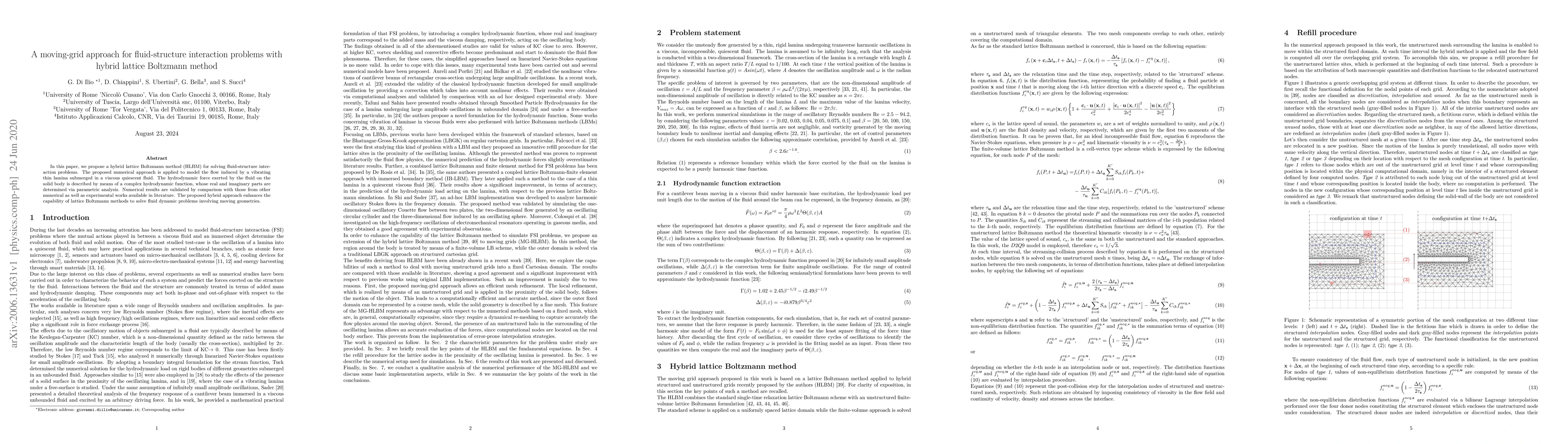 This paper introduces a hybrid lattice Boltzmann method (HLBM) for fluid-structure interaction problems, specifically modeling the flow around a vibrating thin lamina in a fluid. The method enhances the lattice Boltzmann approach's ability to handle moving geometries and validates the results against existing numerical and experimental data.