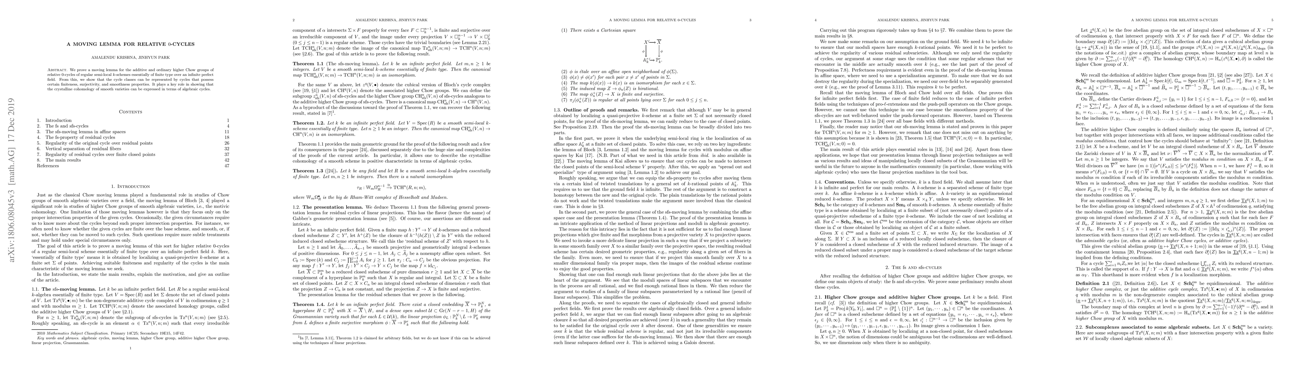 The paper proves a moving lemma for relative $0$-cycles on regular semi-local schemes over perfect fields, demonstrating that cycle classes can be represented by finite, surjective, and smooth cycles, which aids in expressing crystalline cohomology in terms of algebraic cycles.